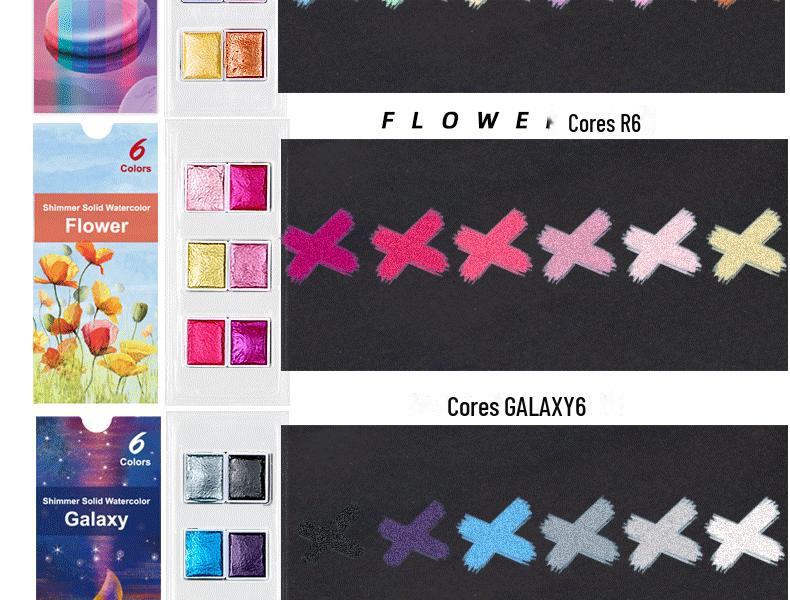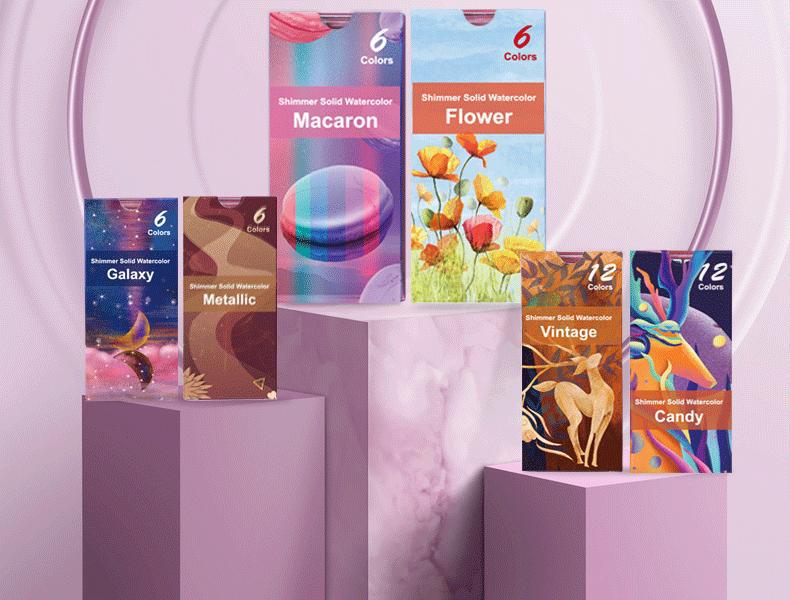 6 Color metal, 6 Color macaroons, 6 color flowers, 6 Color Stars, 12 color retro, 12 color candy