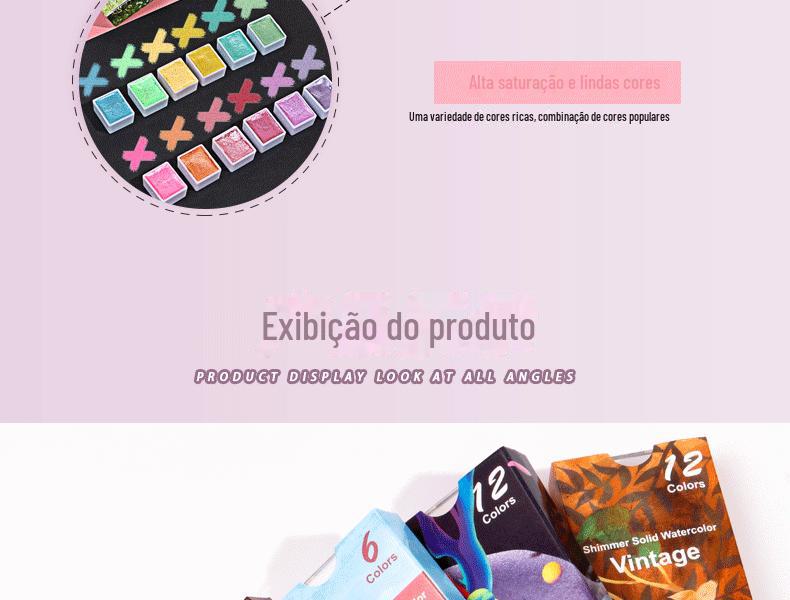 Xi Le 6 cores 12 cores sólidas aquarela pigmento conjunto unha arte pigmento perolado metal arte pigmento pintura atacado