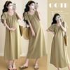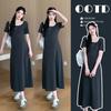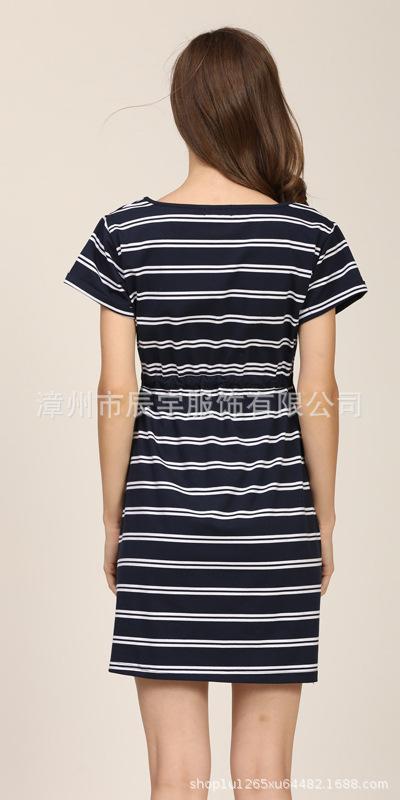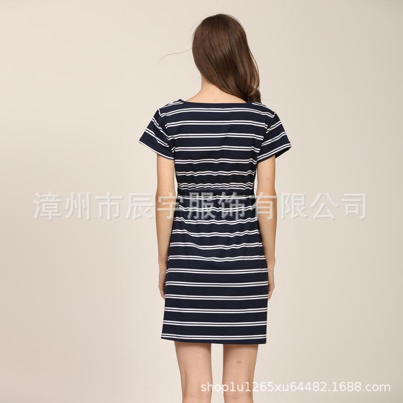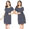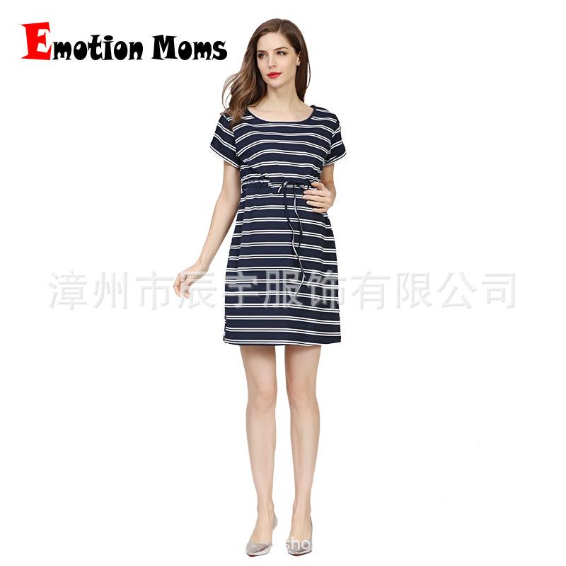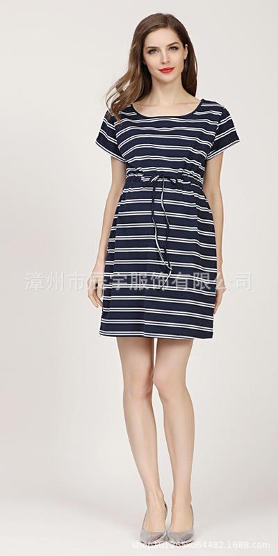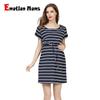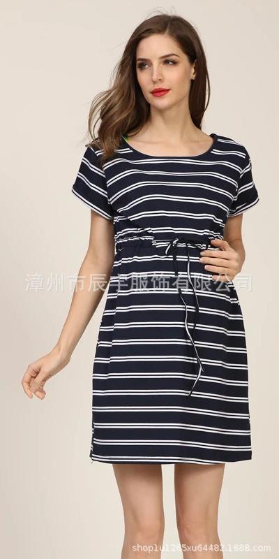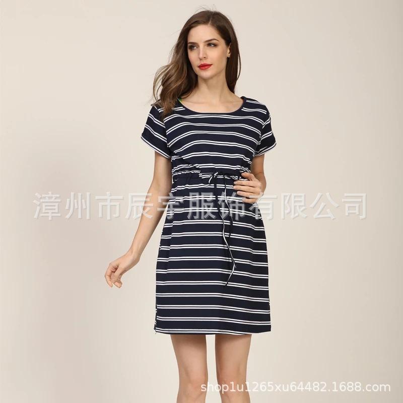 Em estoque 2025 verão moda europeia e americana mulheres grávidas listrado vestido de gola redonda cinto elástico manga curta saia grávida plus size