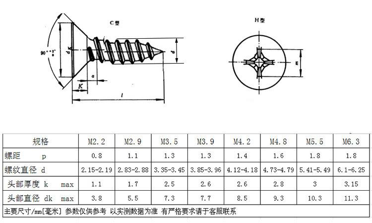 | Parafusos auto-roscantes hexagonais de cabeça escareada em aço inoxidável 304 M2M2.3M2.6M3M4M5M6M8 |