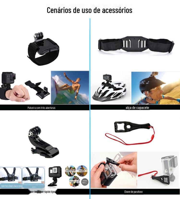 Adequado para: série GOPRO 9 8 7 6 5, série Yi 4K, série Mountain Dog,