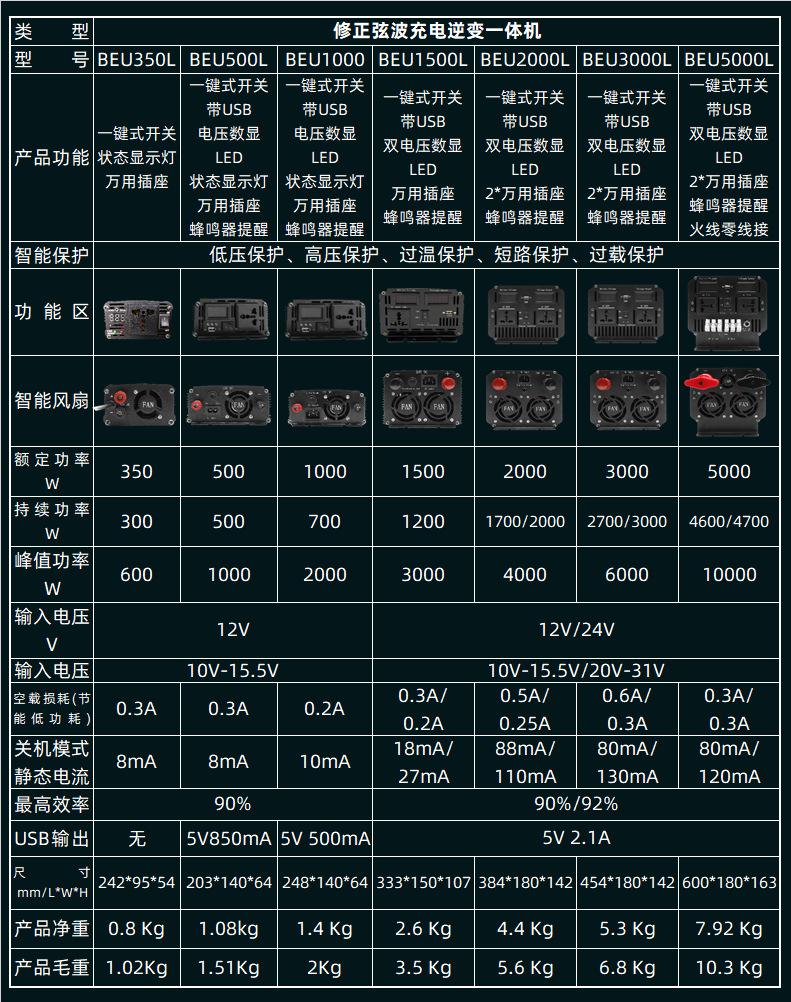 12V350W peak 700W, 12v500w peak 1kw, 12v1000w peak 2kw, 12v1500w peak 3kw, 24V1500W peak 3kw, 12v2000w peak 4k...