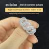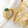 Anel Punk Transfronteiriço Estilo Europeu e Americano Combina com Tudo Moda Zircônia Verde Listrada Design Personalizado Aço Titânio Galvanizado Anel Feminino
