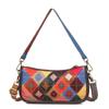 Bolsa Feminina Transfronteiriça Retro Nicho Couro Genuíno de Vaca Primeira Camada Bolsa de Axila Costura Colorida Cor Contrastante Feita à Mão Bolsa de Ombro Bolsa Pequena