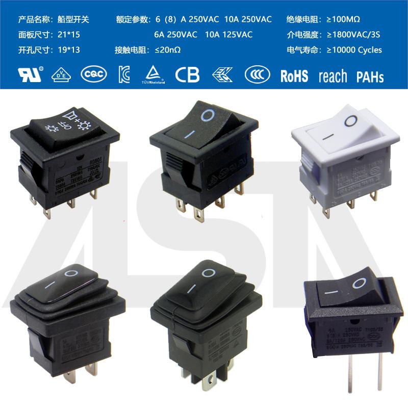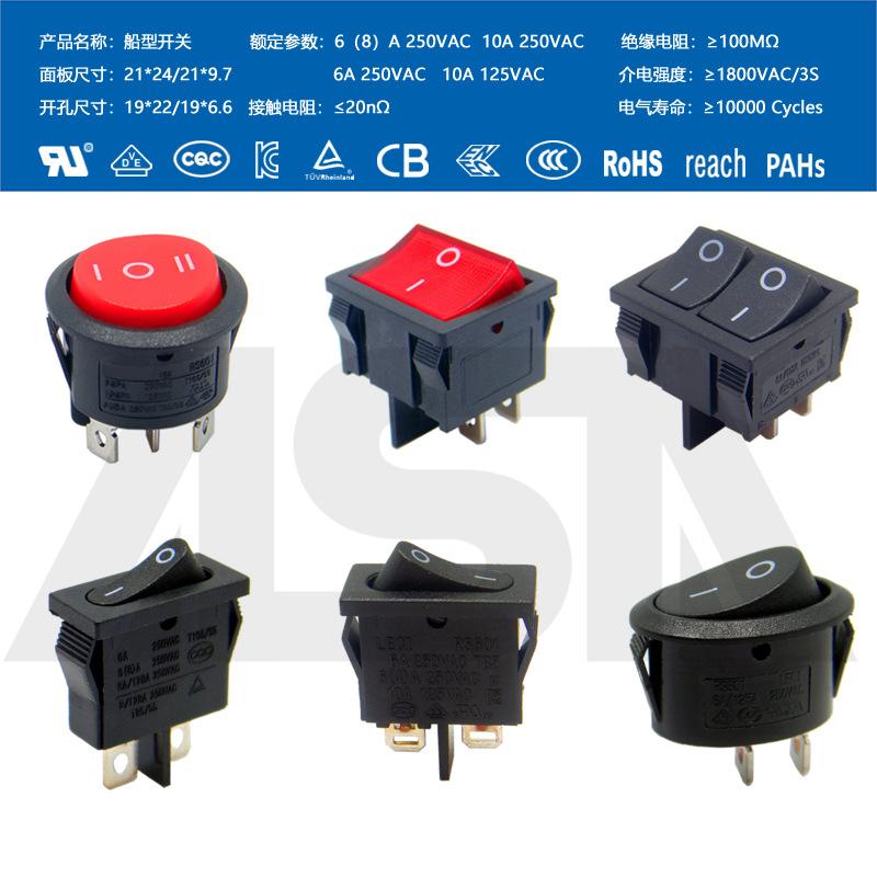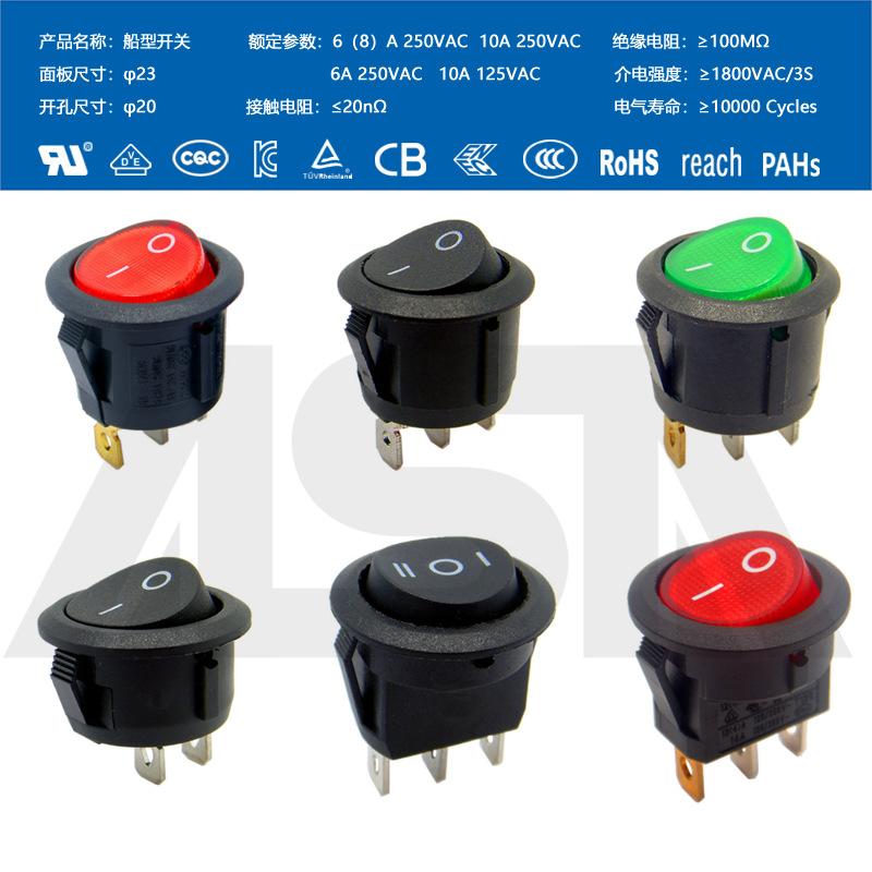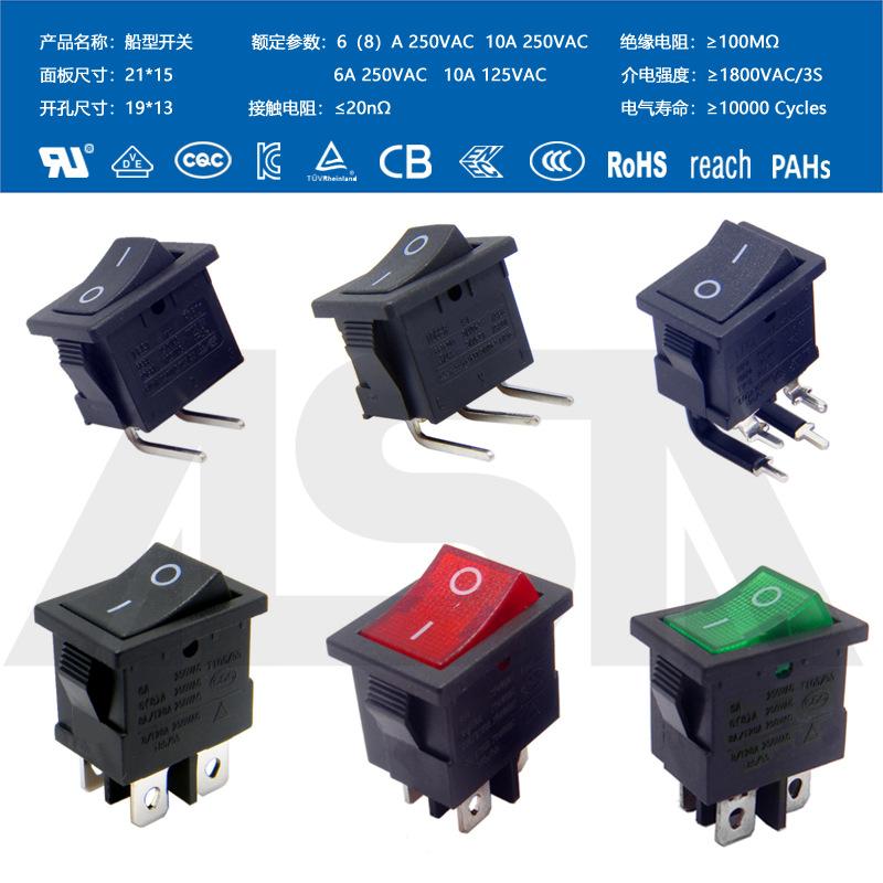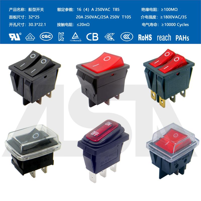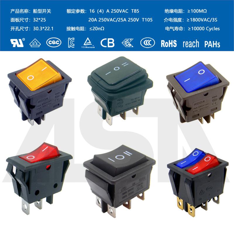 Interruptor em formato de barco com quatro pinos, 2 velocidades, à prova d'água IP65, com luz, fonte de alimentação de alta corrente, bipolar KCD4, à prova de poeira, alta potência.