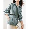 Fornecimento direto da fábrica outono cor sólida estilo coreano cinto elegante viajante médio comprimento preto trench coat casaco para mulheres