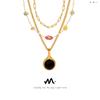 Vendas diretas da fábrica titânio aço emendado preto trançado colar feminino pingente de camada dupla corrente de clavícula Internet celebridade gargantilha moda lápis