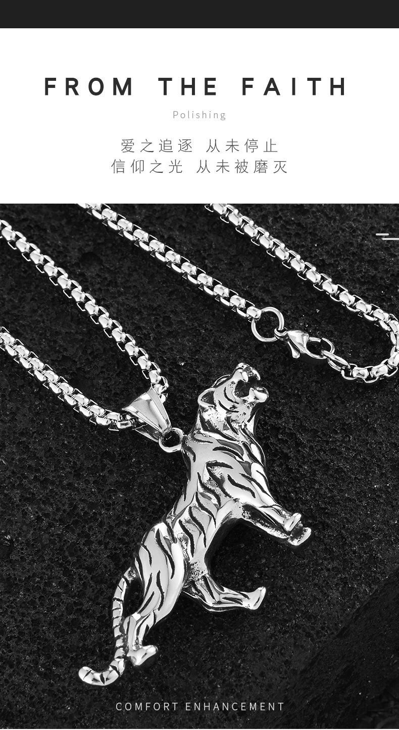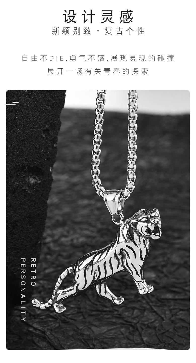 Europa e Estados Unidos personalidade retrô dominando Colar de tigre na moda Pingente de tigre titânio aço hip-hop joias pendentes da moda atacado