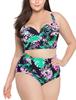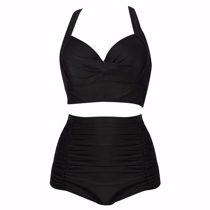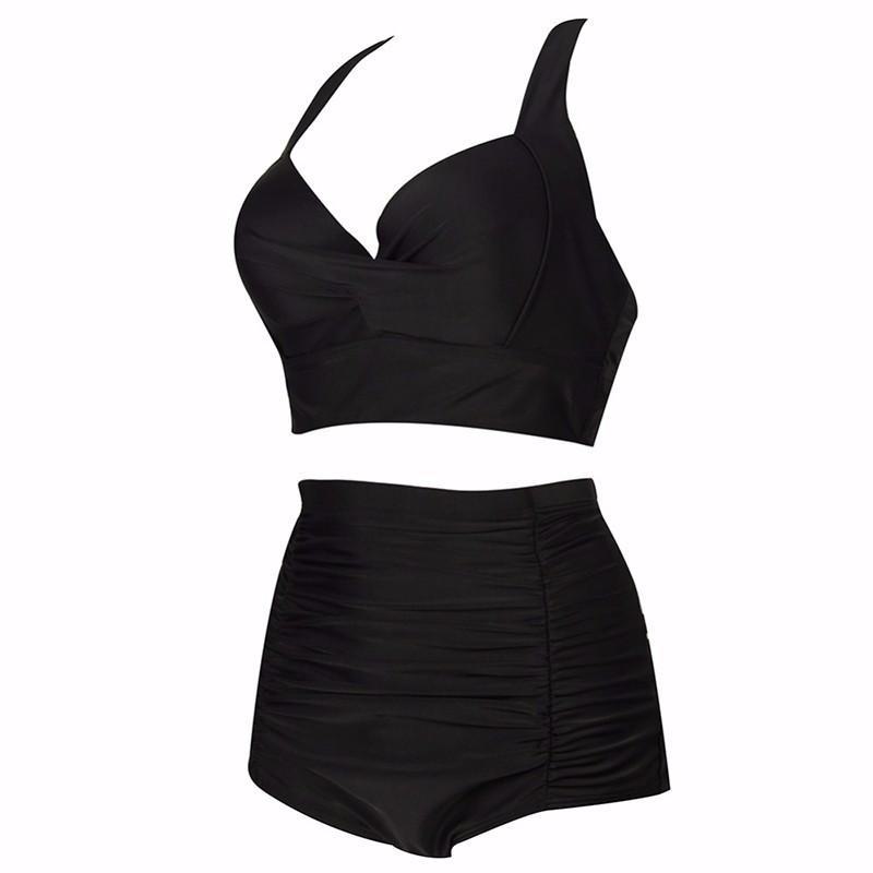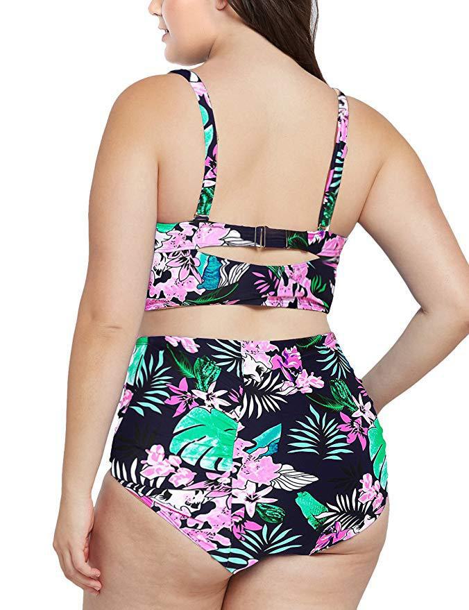 Novo biquíni plus size europeu e americano estampado, cintura alta, biquíni com dois cortes, cor sólida, maiô