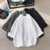 Verão novo estilo coreano camisa da moda masculina stand collar preto e branco 3/4 manga camisa masculina bonito casual manga comprida casaco