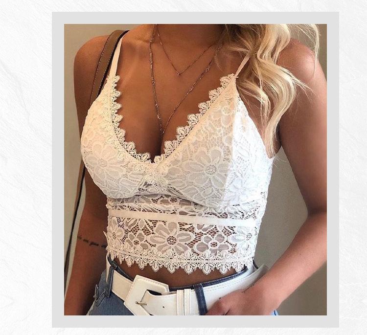 Água solúvel renda camisole roupas externas das mulheres primavera e verão Internet celebridade sexy peito V-neck com almofada peito cueca