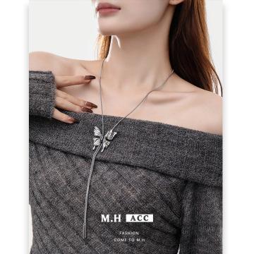 Colar de design de nicho pode ser puxado para fora e estilo de moda temperamento suéter corrente feminina high-end longo outono e inverno coleção de colar
