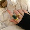 Anel de Esmeralda de Alta Qualidade Estilo Francês Feminino Europeu e Americano Ouro Retrô Envelhecido Anel de Dedo