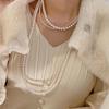 Colar Longo de Pérolas, Acessório Simples, Camada Dupla, Elegante Colar Longo para Primavera e Verão, Colar de Pérolas de Imitação de Luxo Leve
