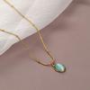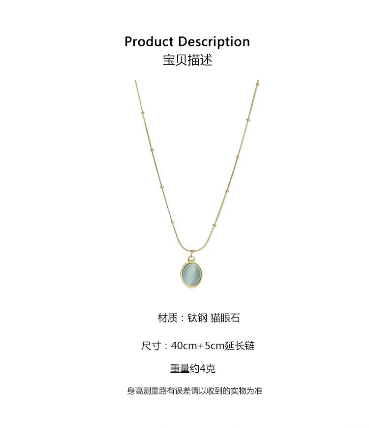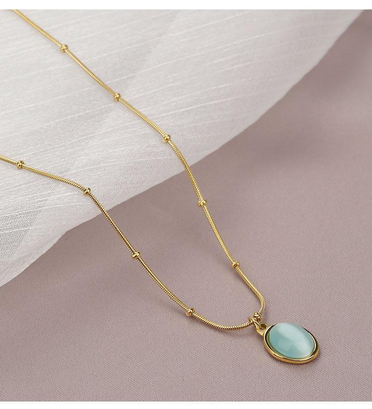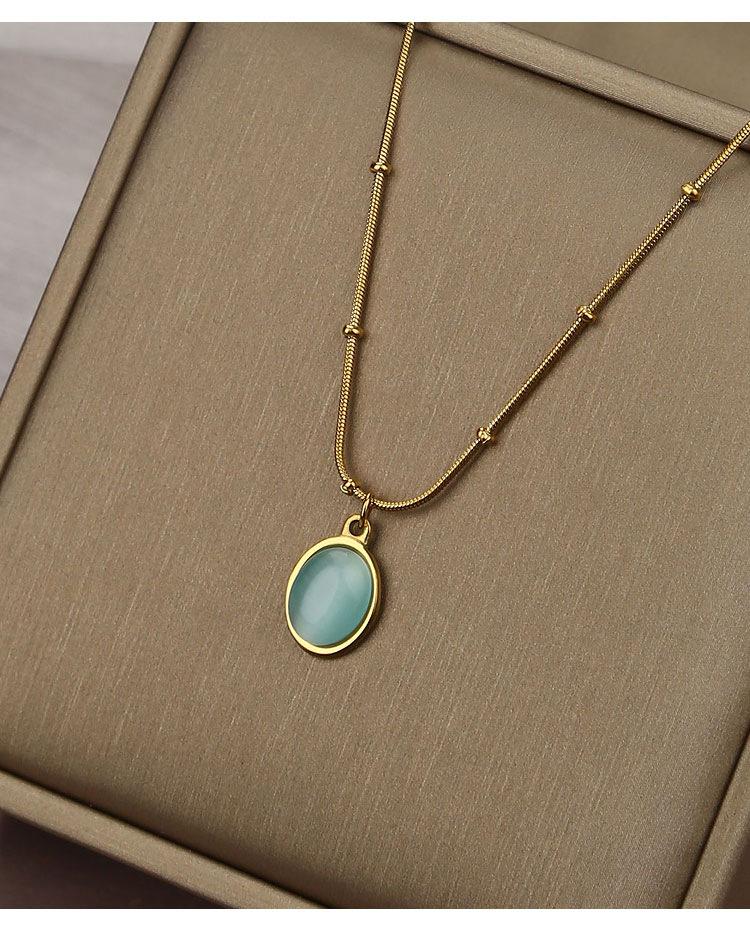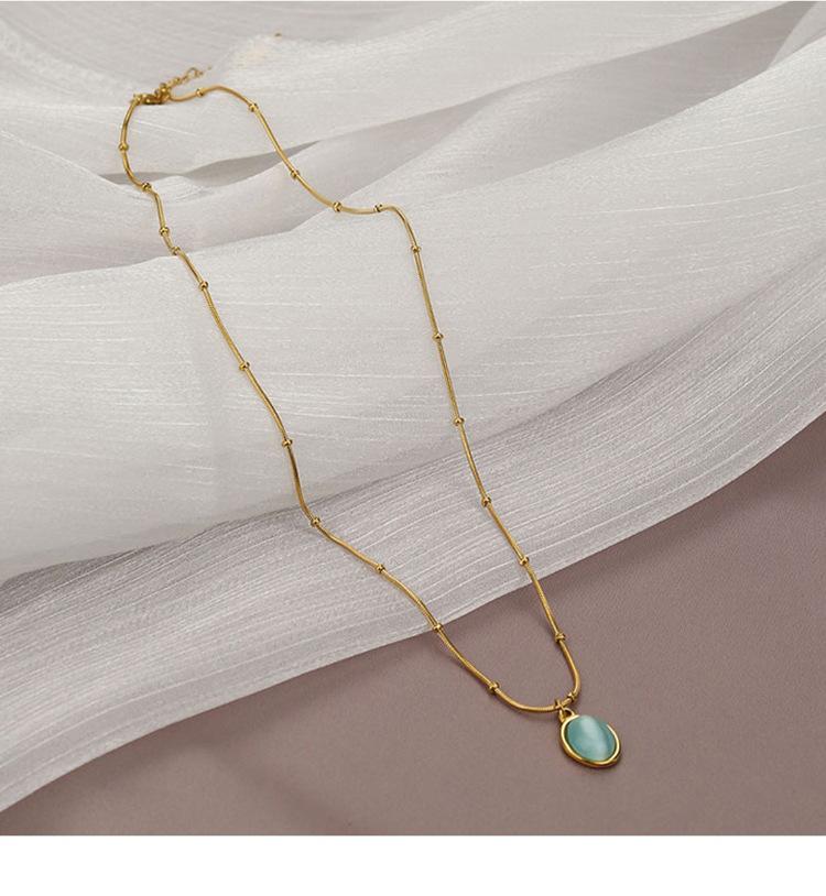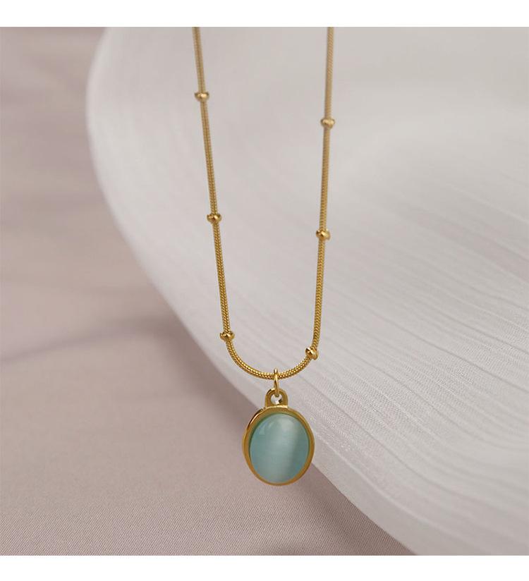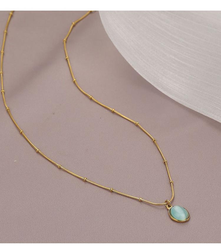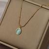 Colar com Pingente Oval de Opala Retrô Francês para Mulheres, Design de Nicho de Luxo Leve, Aço Titânio Cor Livre, Corrente para Clavícula