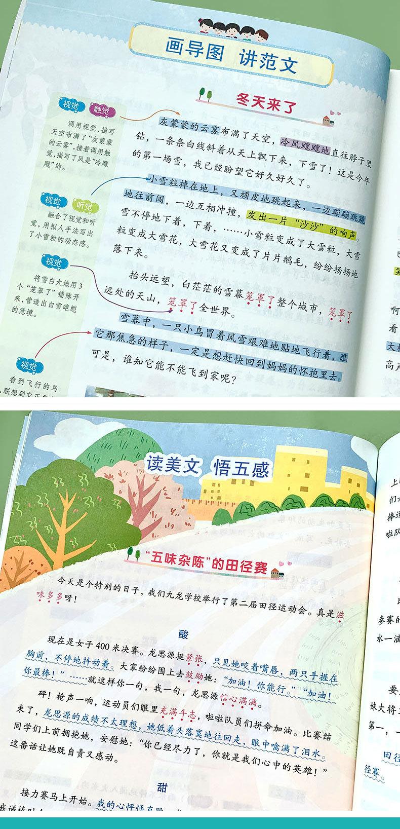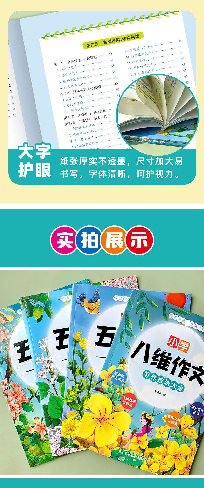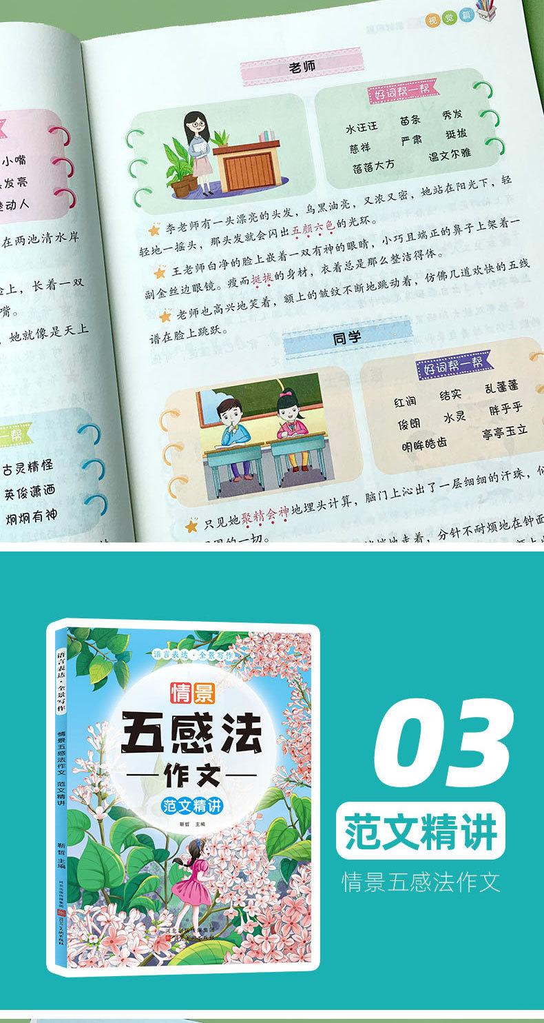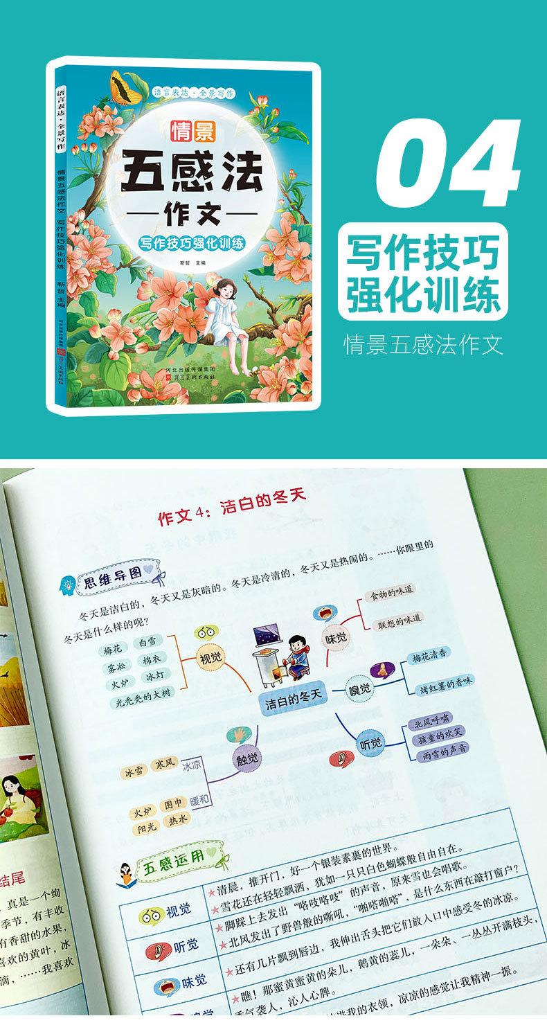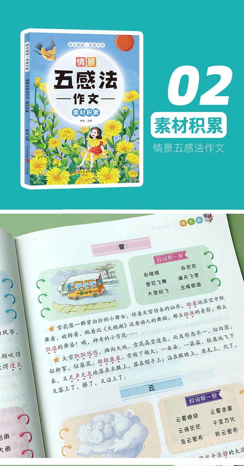 Coleção de composição de alunos do ensino fundamental composição de oito dimensões composição de cinco sentidos acúmulo de material Grade 1-2-3-5-6 livro de composição