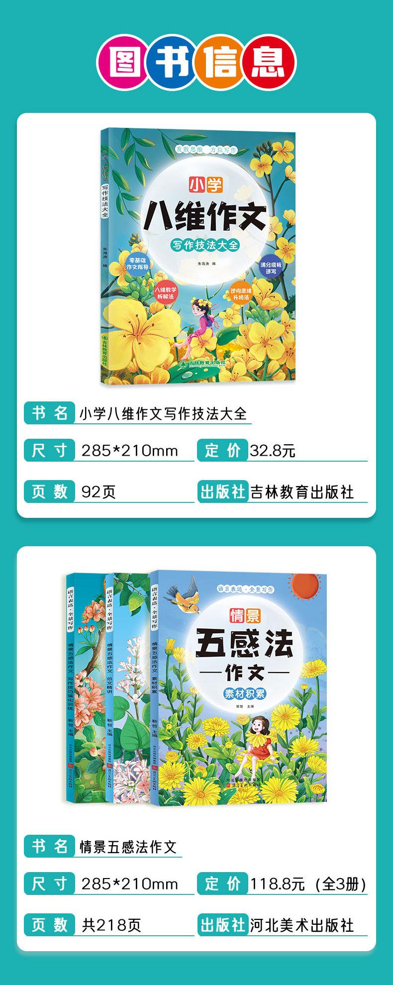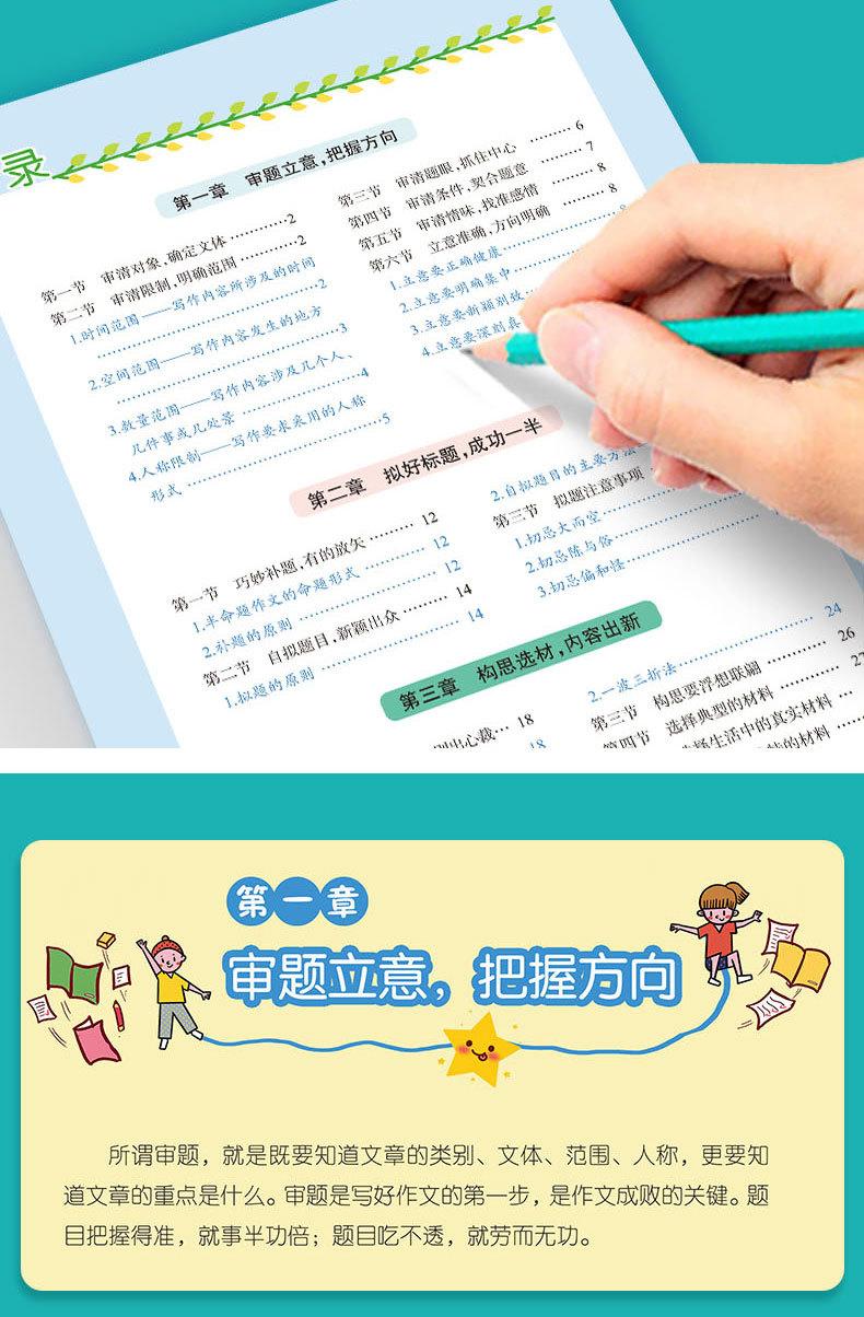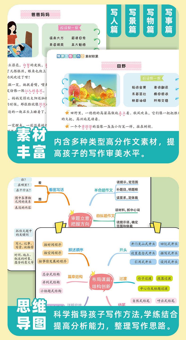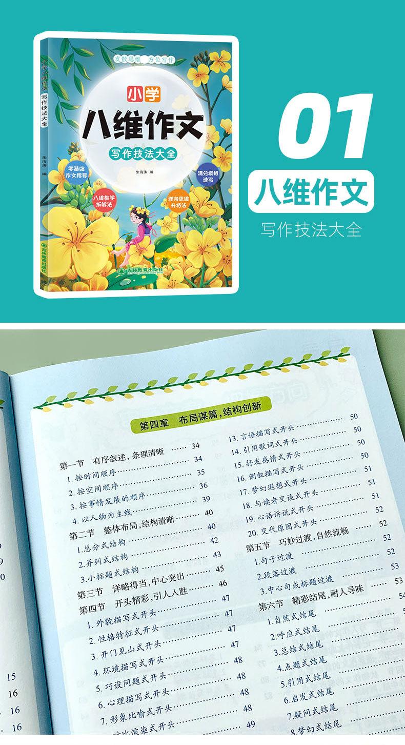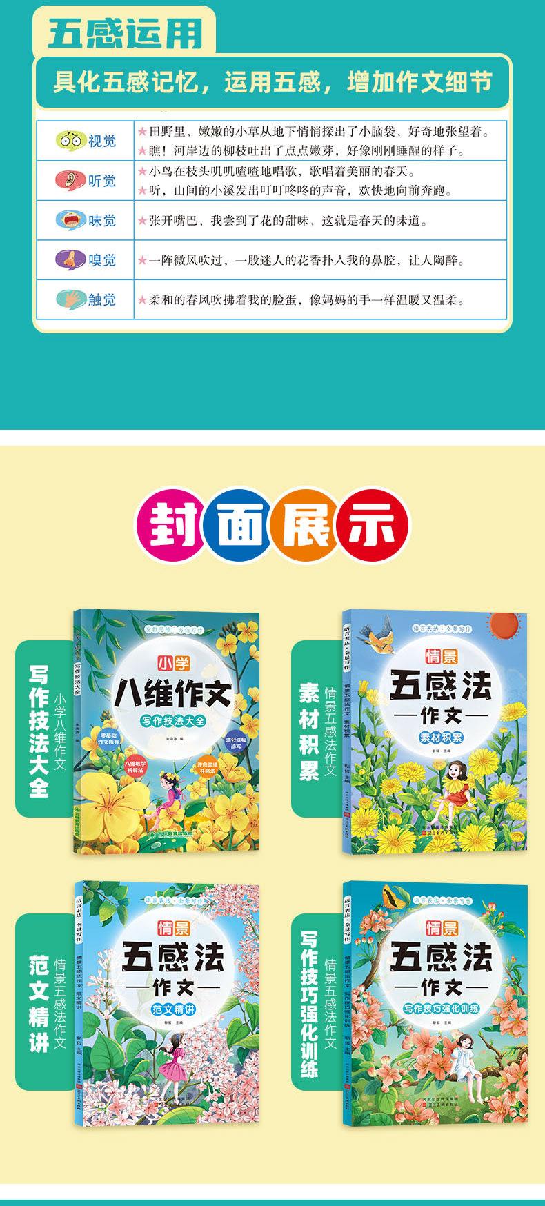 Coleção de composição de alunos do ensino fundamental composição de oito dimensões composição de cinco sentidos acúmulo de material Grade 1-2-3-5-6 livro de composição