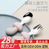 Colher auxiliar de silicone para alimentos, colher de garfo e colher de aço inoxidável 304 com cabo curto para crianças, colher para comer e bebê, atacado