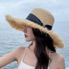 Chapéu de Praia Feminino Estilo Coreano All-match Chapéu de Palha Boêmio de Abas Grandes para Viagem Chapéu de Sol Dobrável