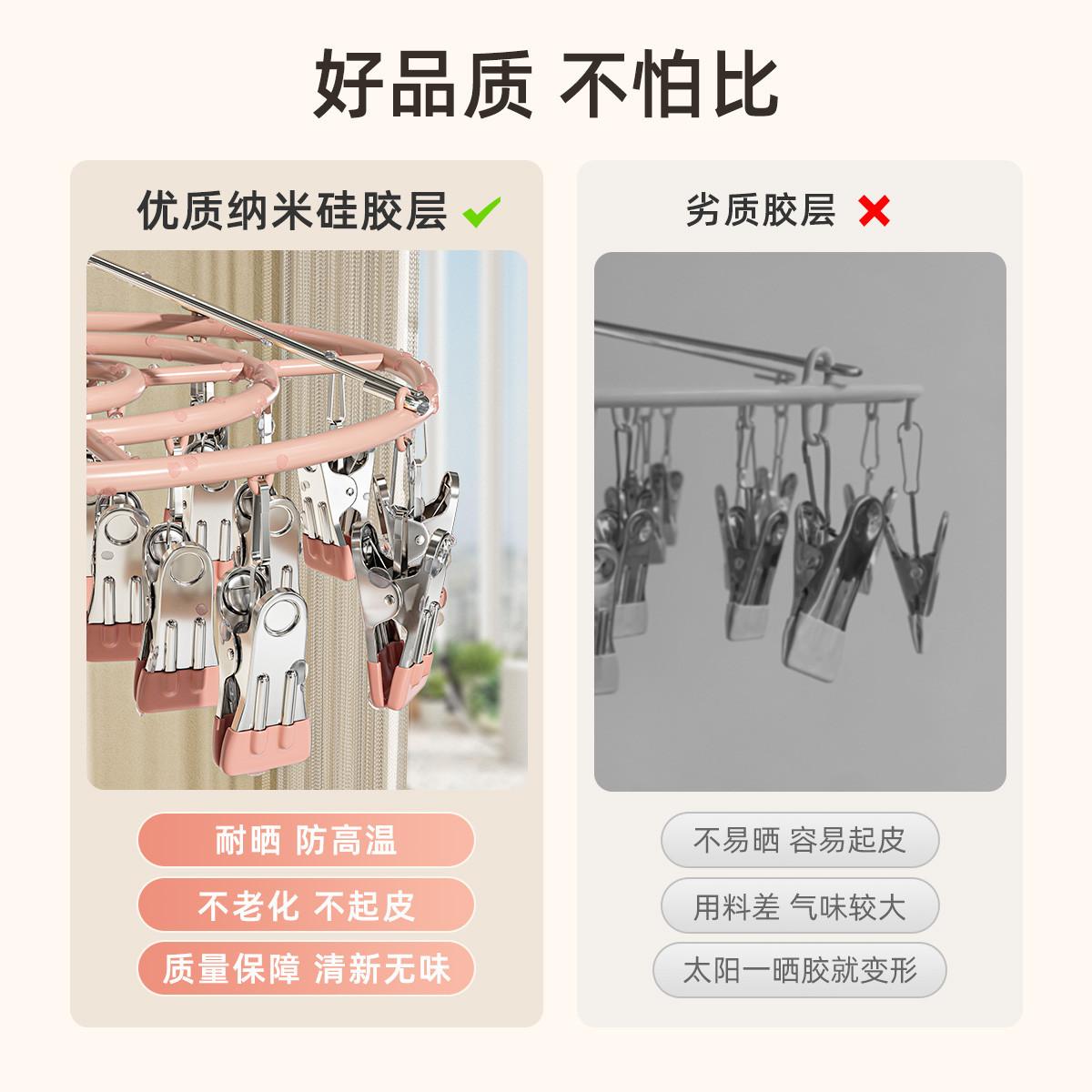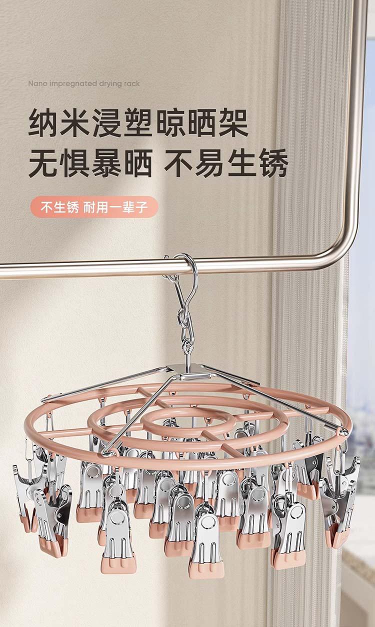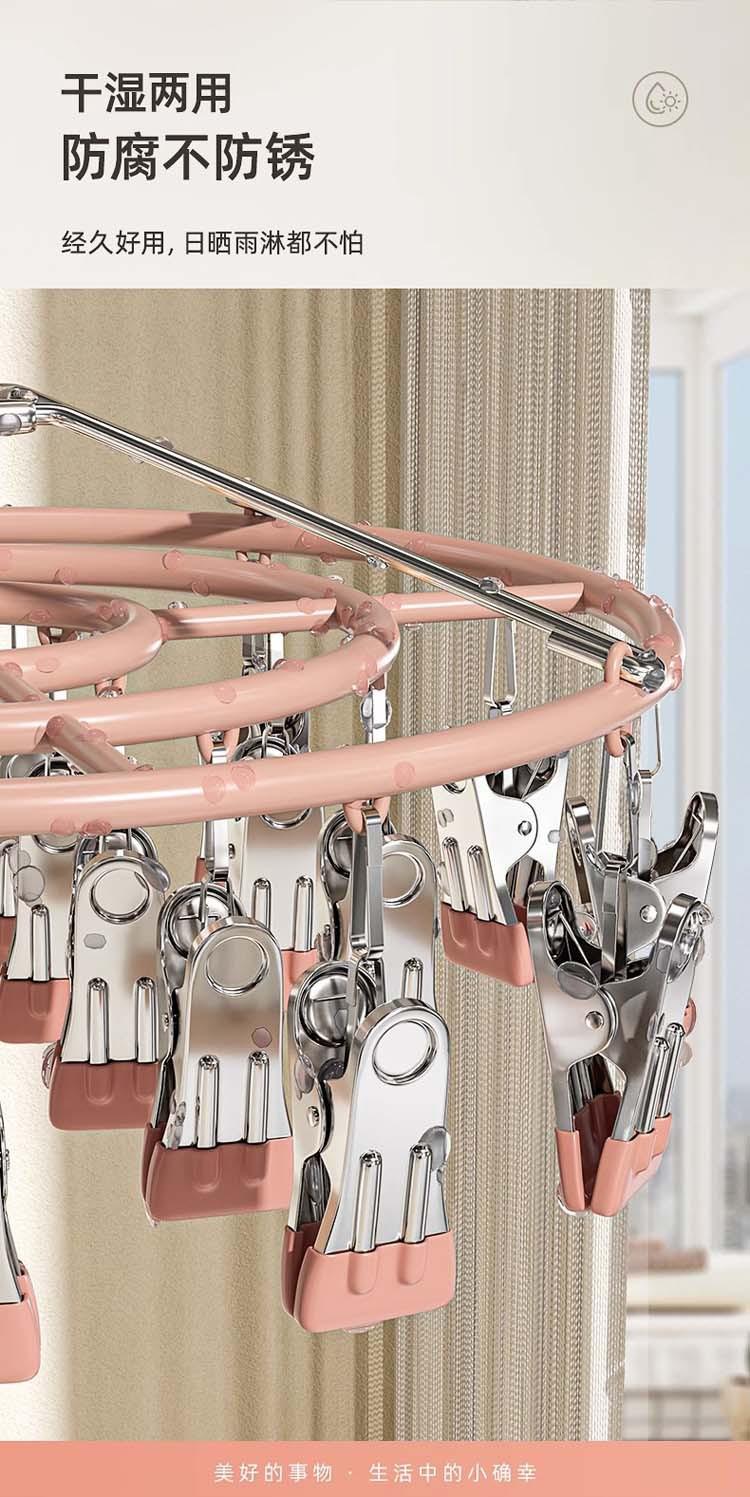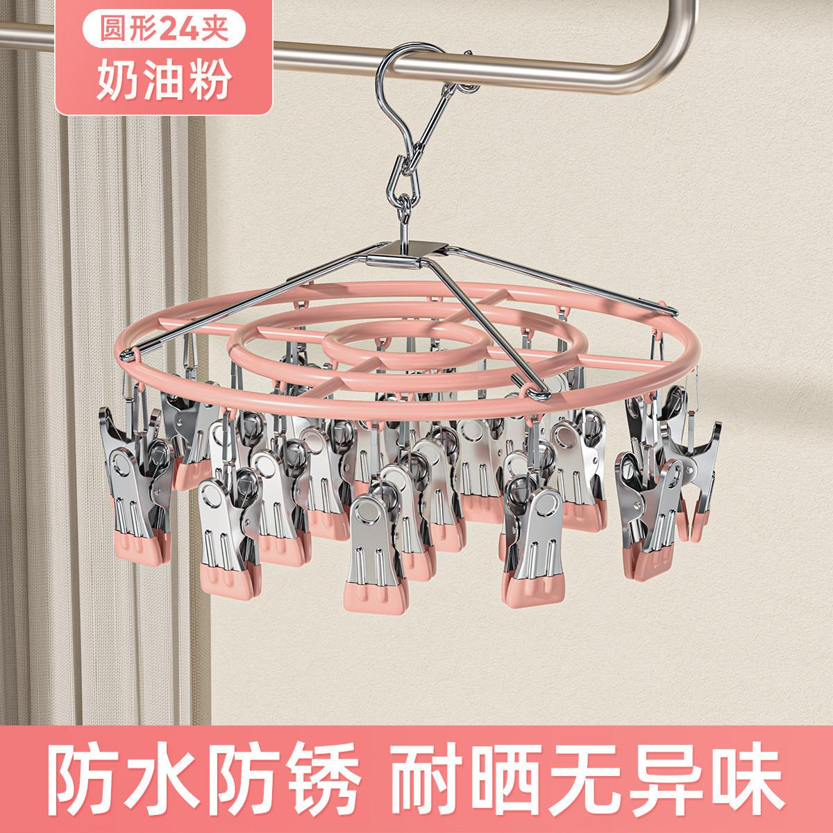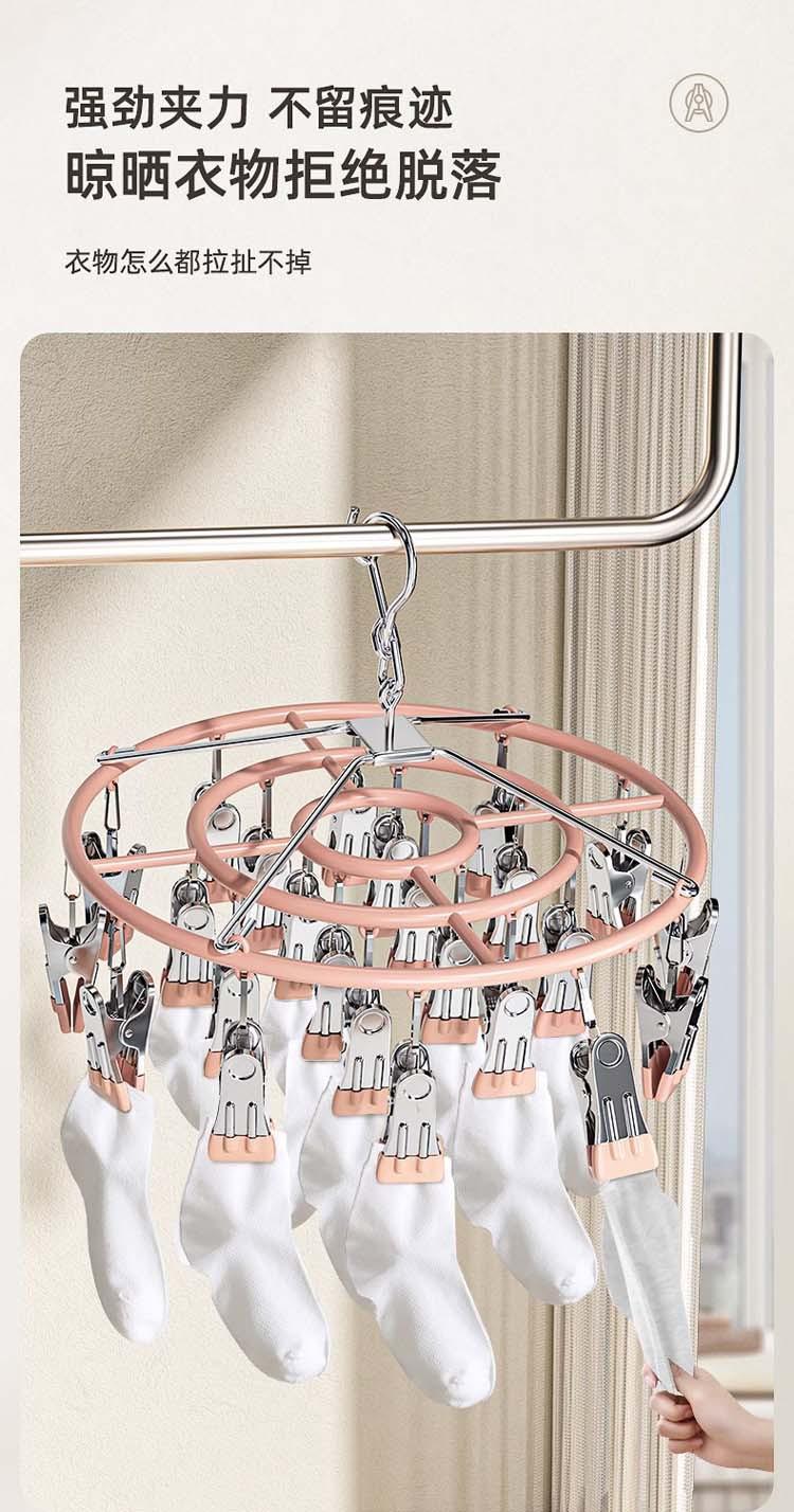 Varal para Secar Meias Aço Inoxidável Varal para Secar Roupa Varanda Doméstico Cabide Redondo Multifuncional Artefato Clipe para Peças Íntimas