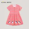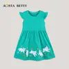 24 novo verão meninas vestido dos desenhos animados animal impressão vestido de princesa em torno do pescoço pulôver de malha de algodão de manga curta vestido infantil