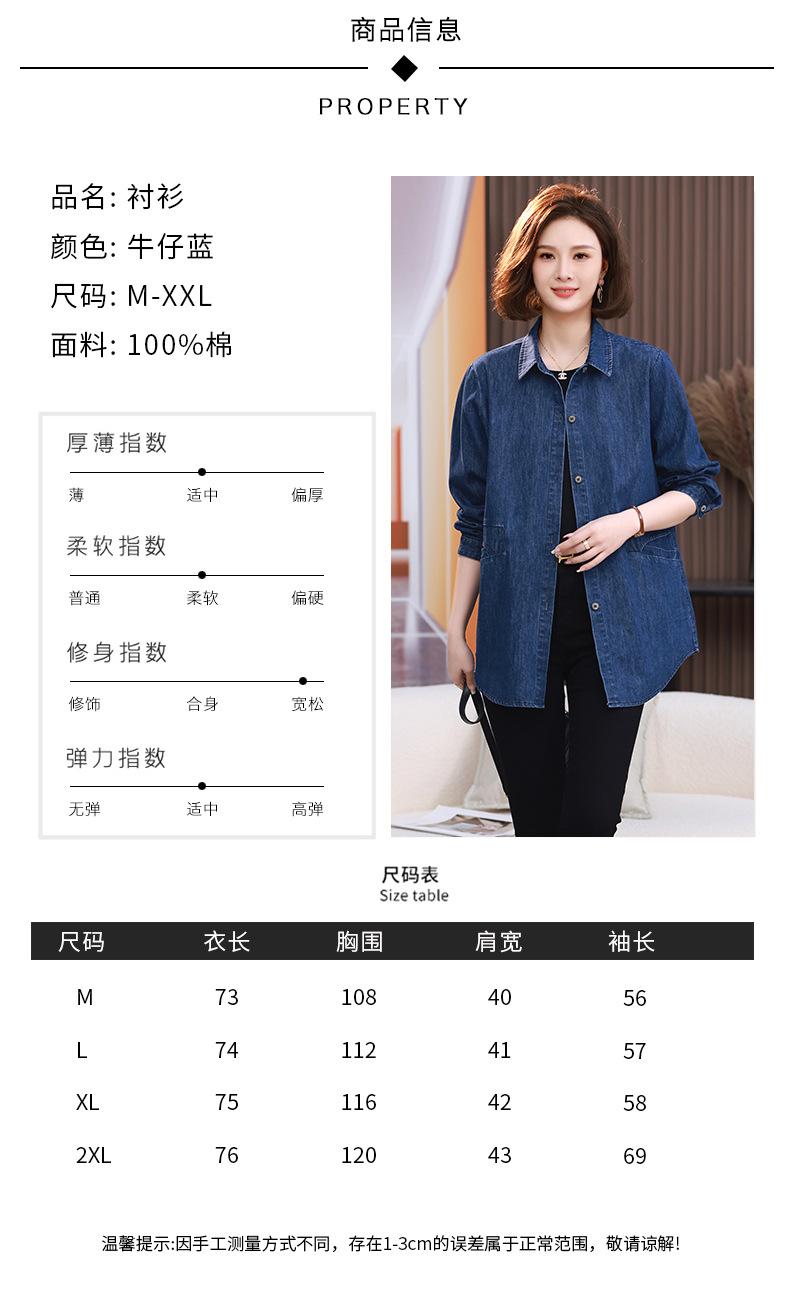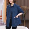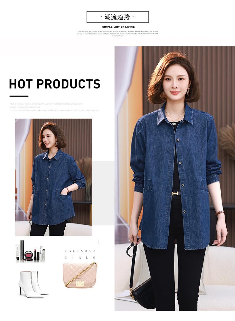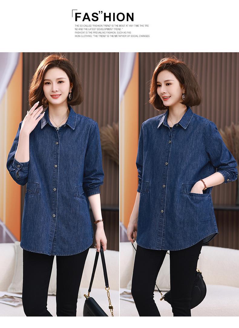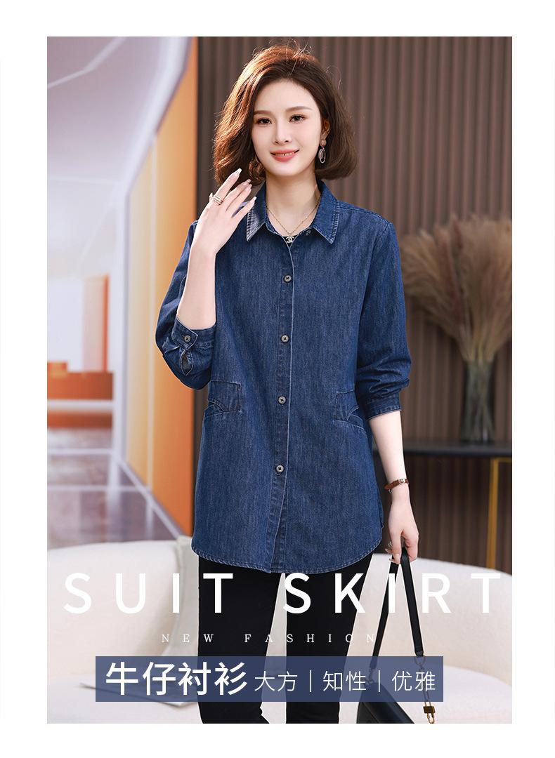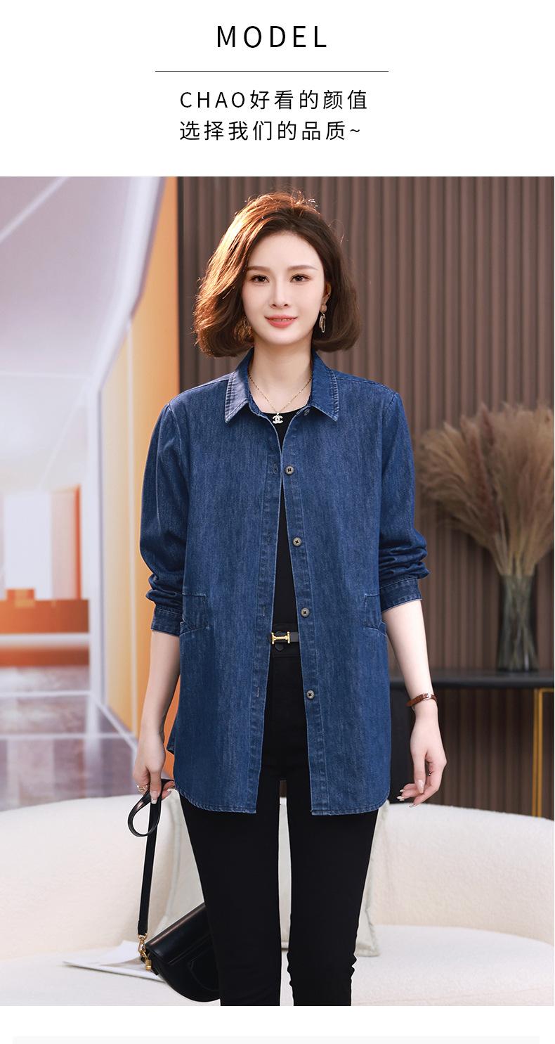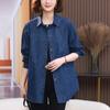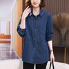 Camisa jeans feminina primavera e outono 2024, novo design, senso de nicho, camisa solta de algodão casual para mãe de meia-idade