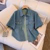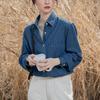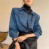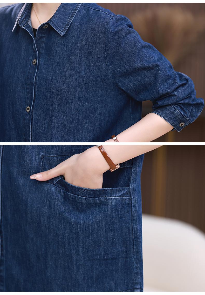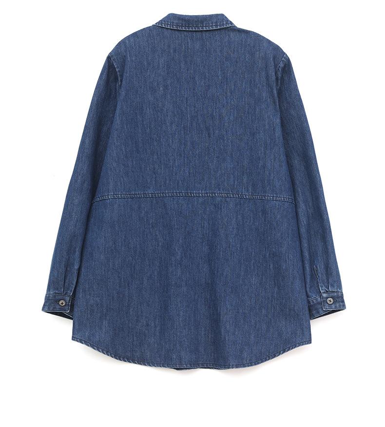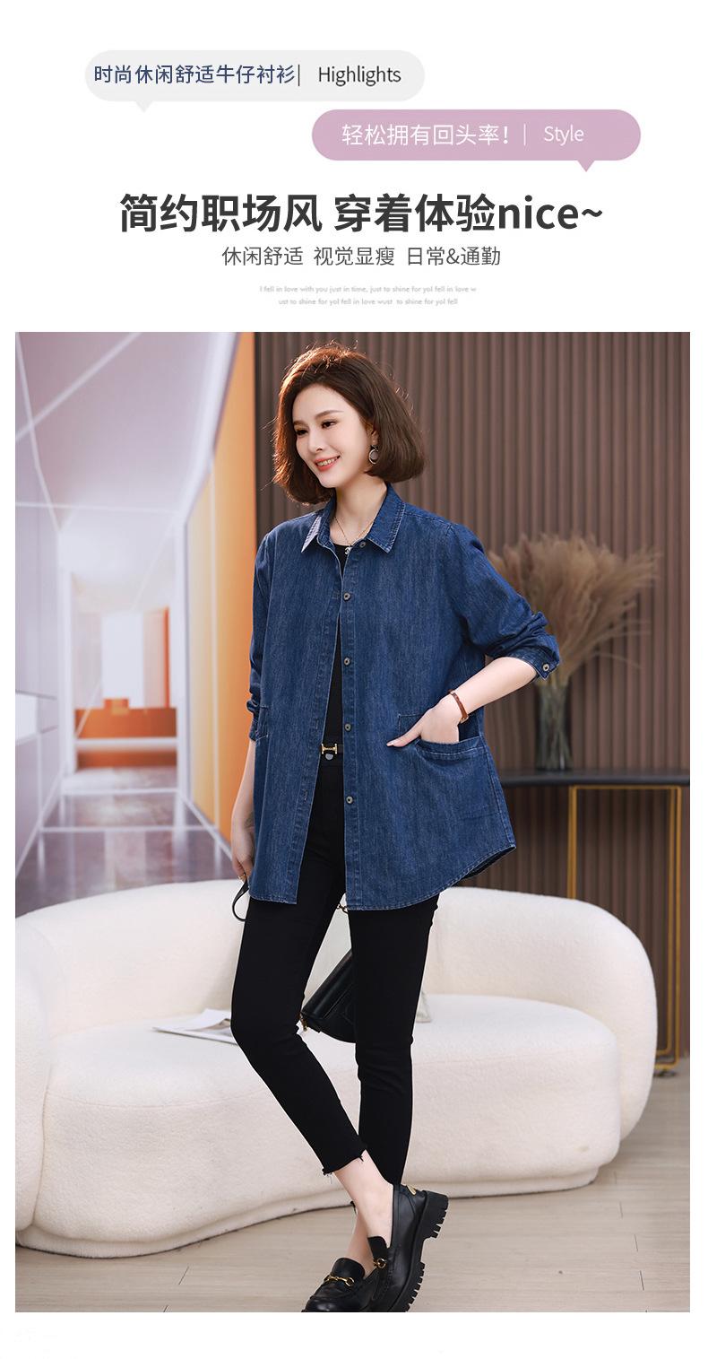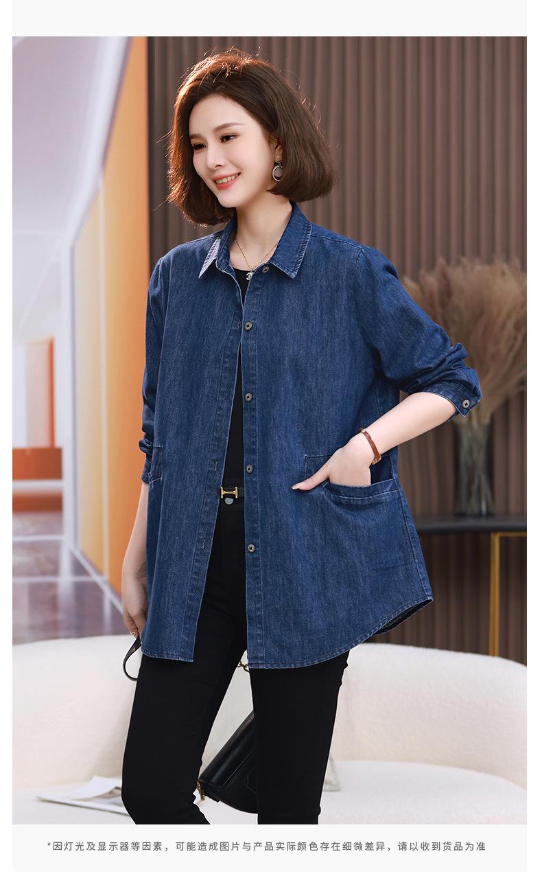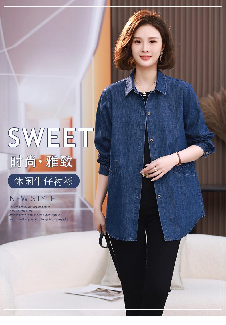 Camisa jeans feminina primavera e outono 2024, novo design, senso de nicho, camisa solta de algodão casual para mãe de meia-idade