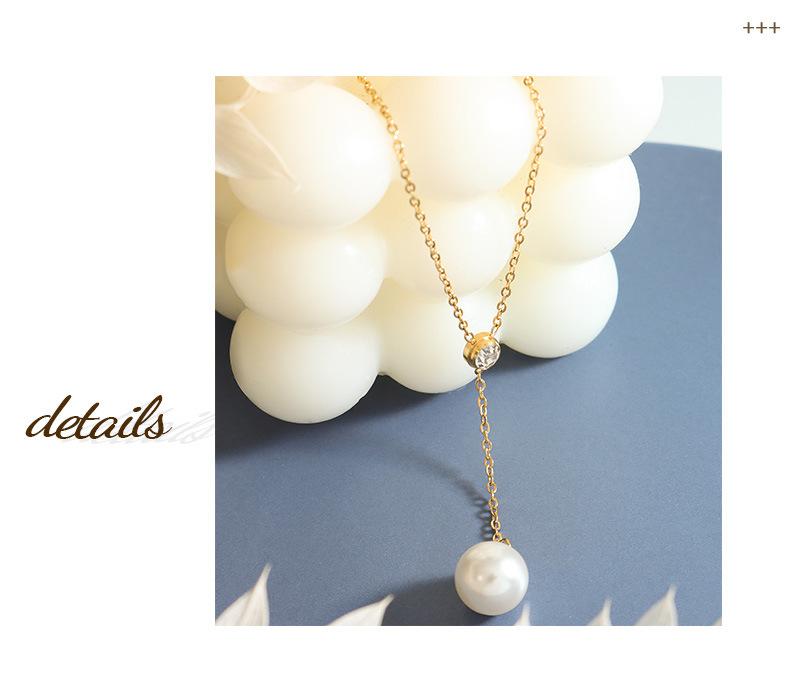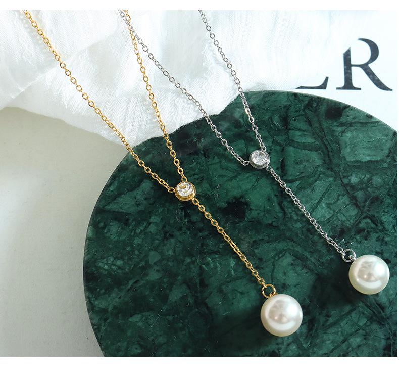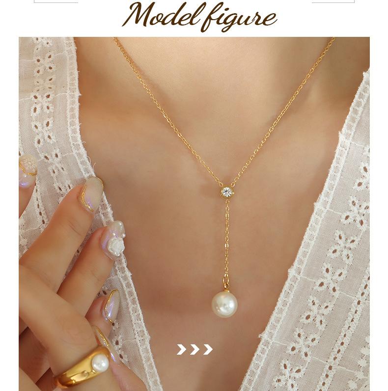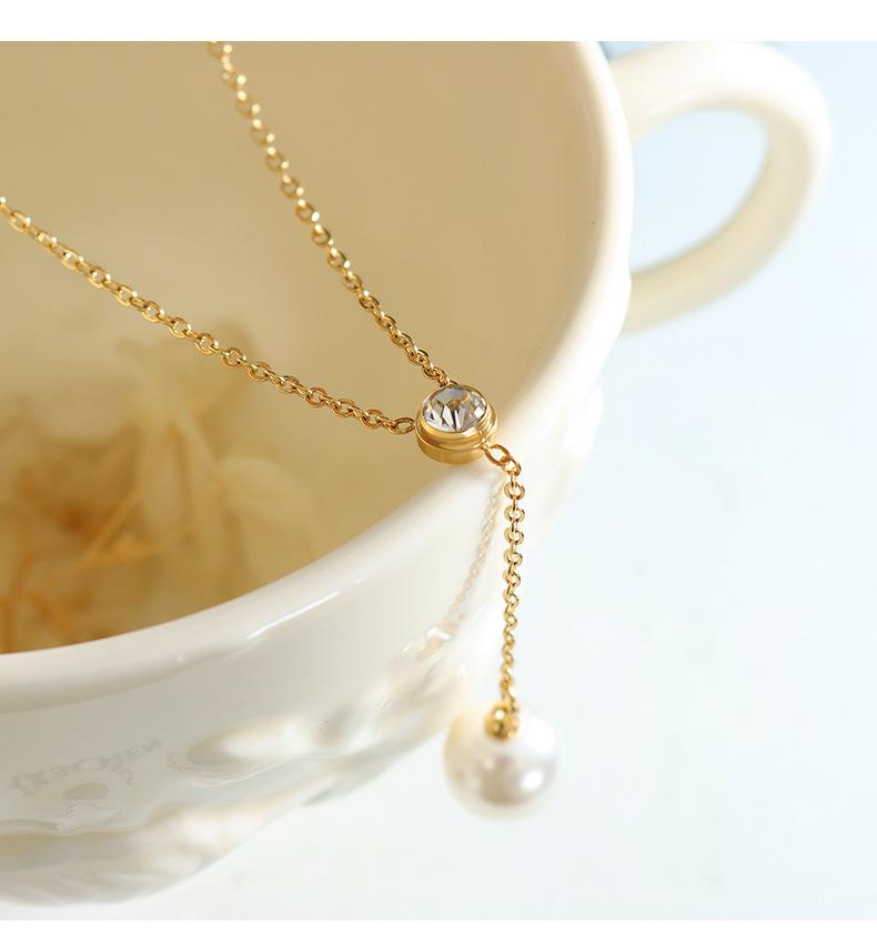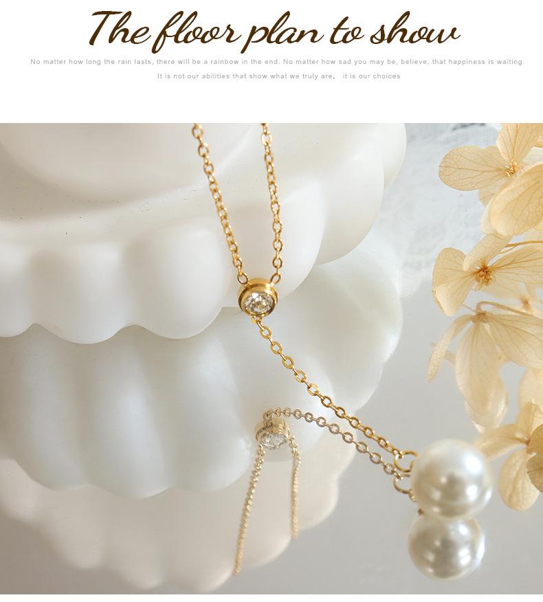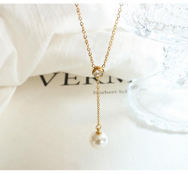 Estilo japonês e coreano estilo fresco titânio aço chapeado imitação pérola pendente acessórios zircônia tassel colar moda simples clavícula para as mulheres
