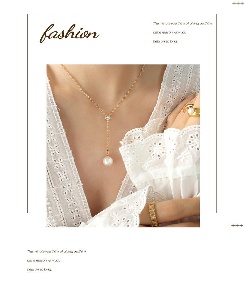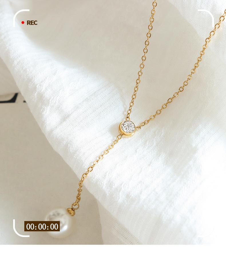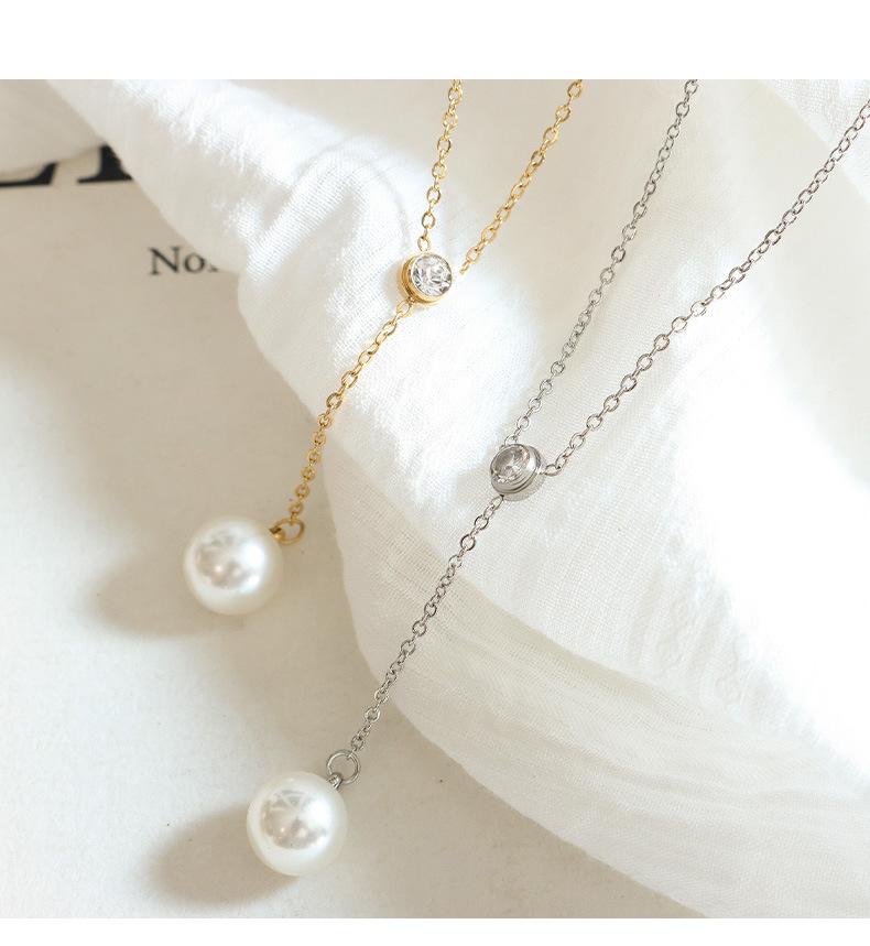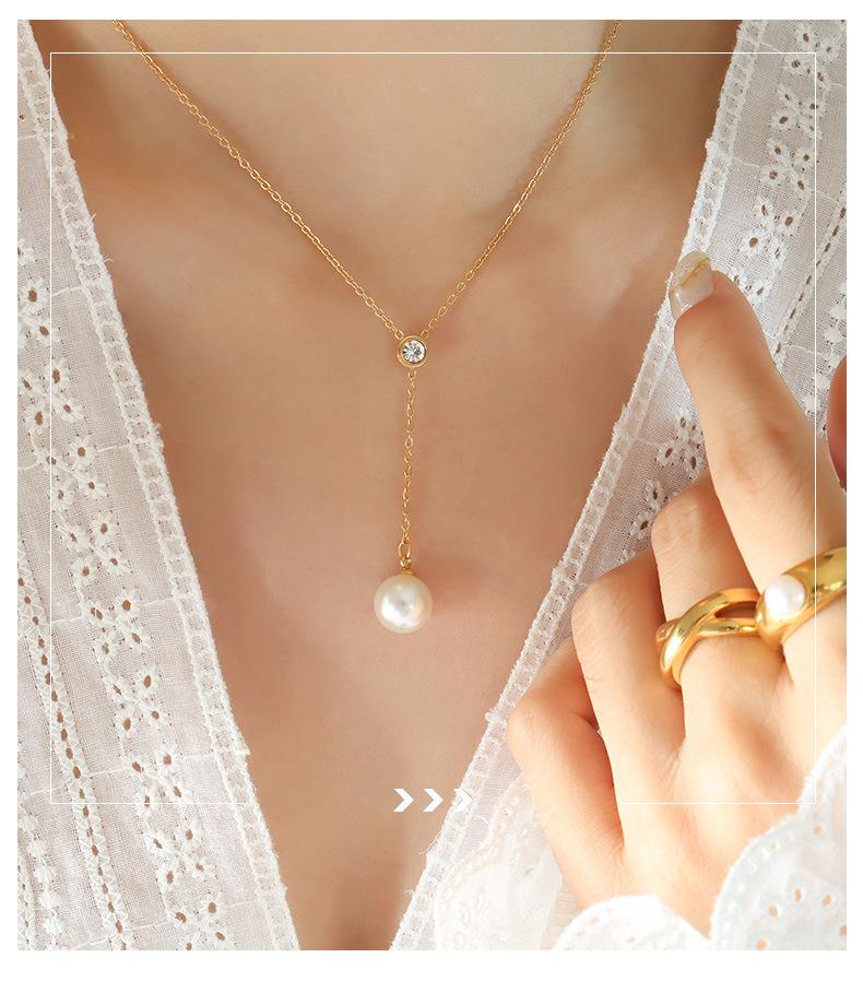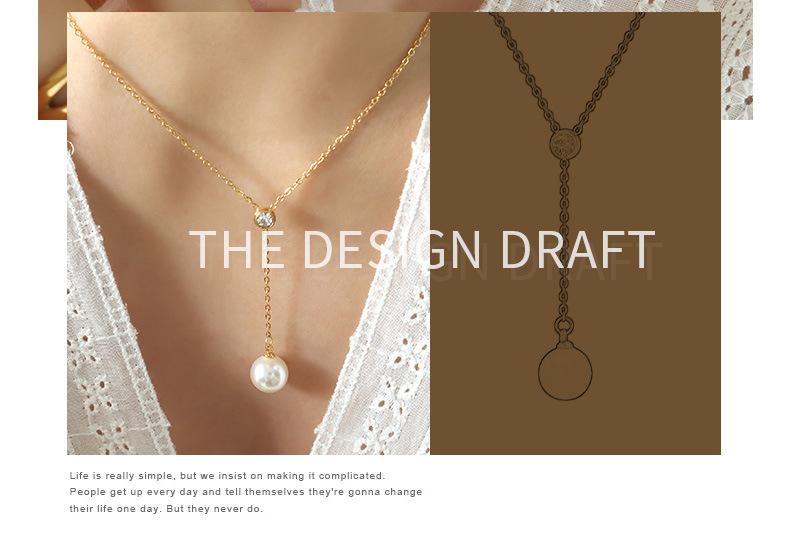 Estilo japonês e coreano estilo fresco titânio aço chapeado imitação pérola pendente acessórios zircônia tassel colar moda simples clavícula para as mulheres