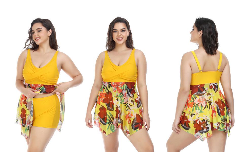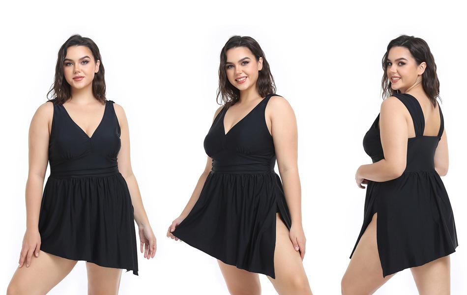 Compre Moda Praia Conservadora Plus Size para Mulheres, Maiô de Cor Sólida Emagrecedor com Perna Quadrada para Fontes Termais, Estilo Transfronteiriço Europeu e Americano Atacado, Emagrecedor Plus Size no atacado no Joom.pro