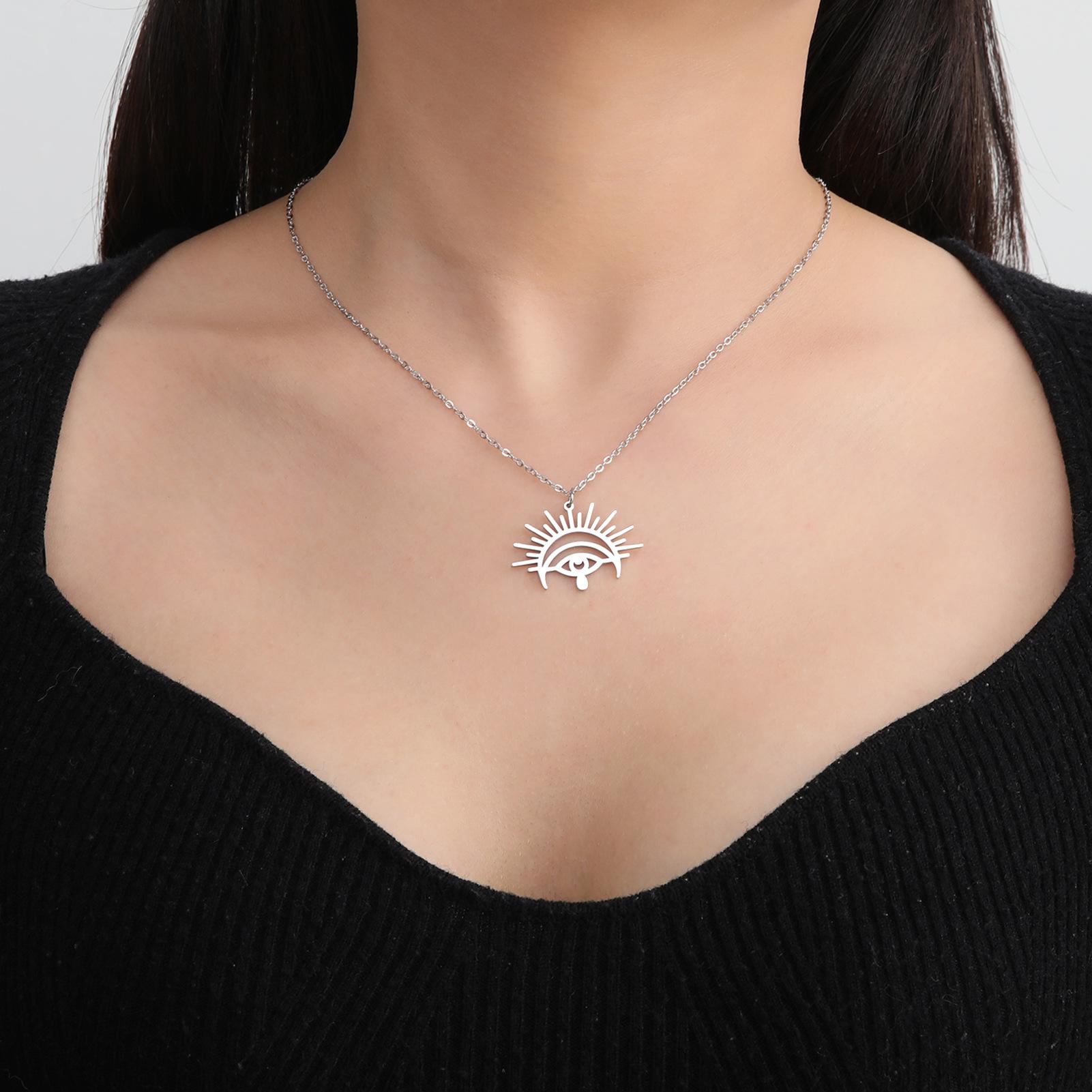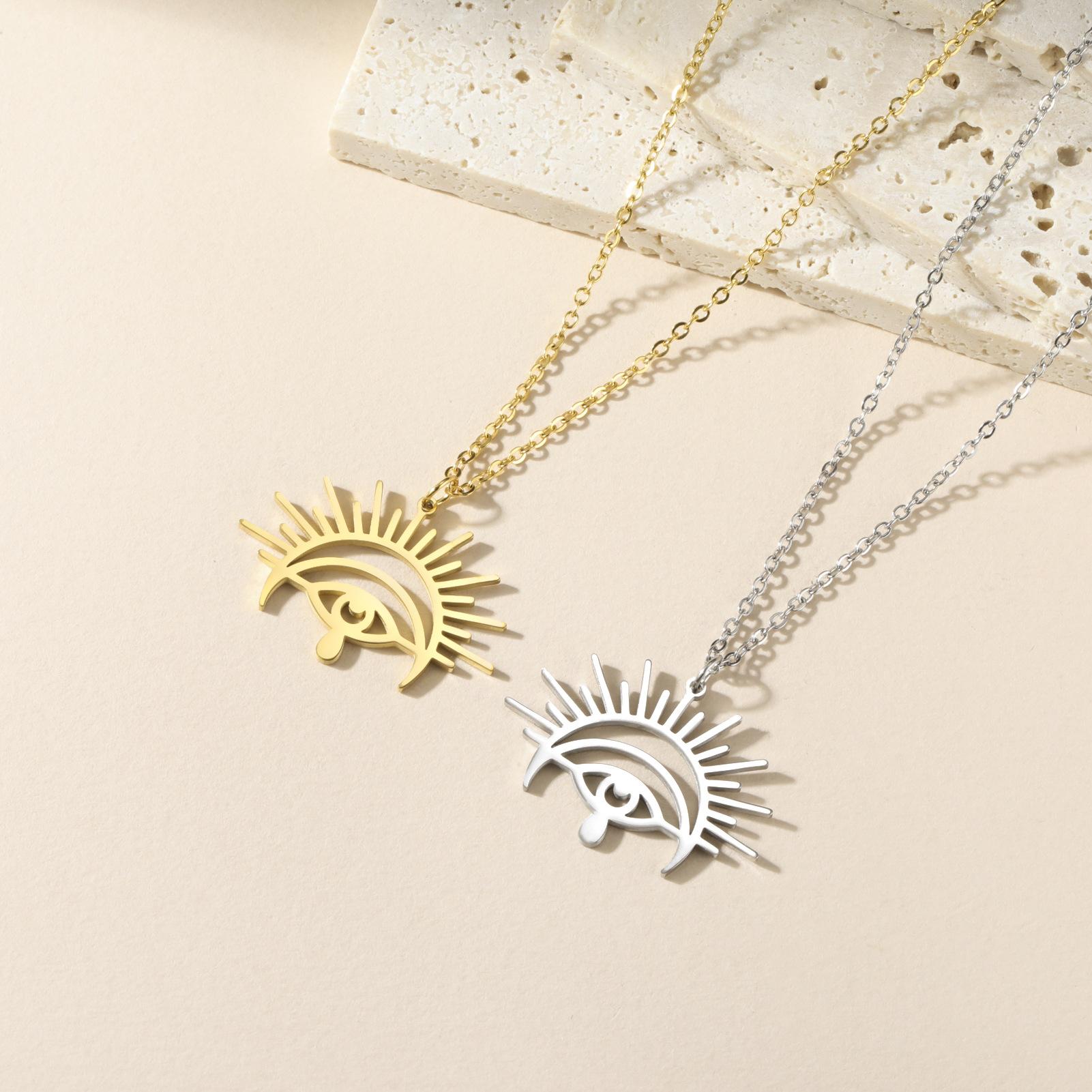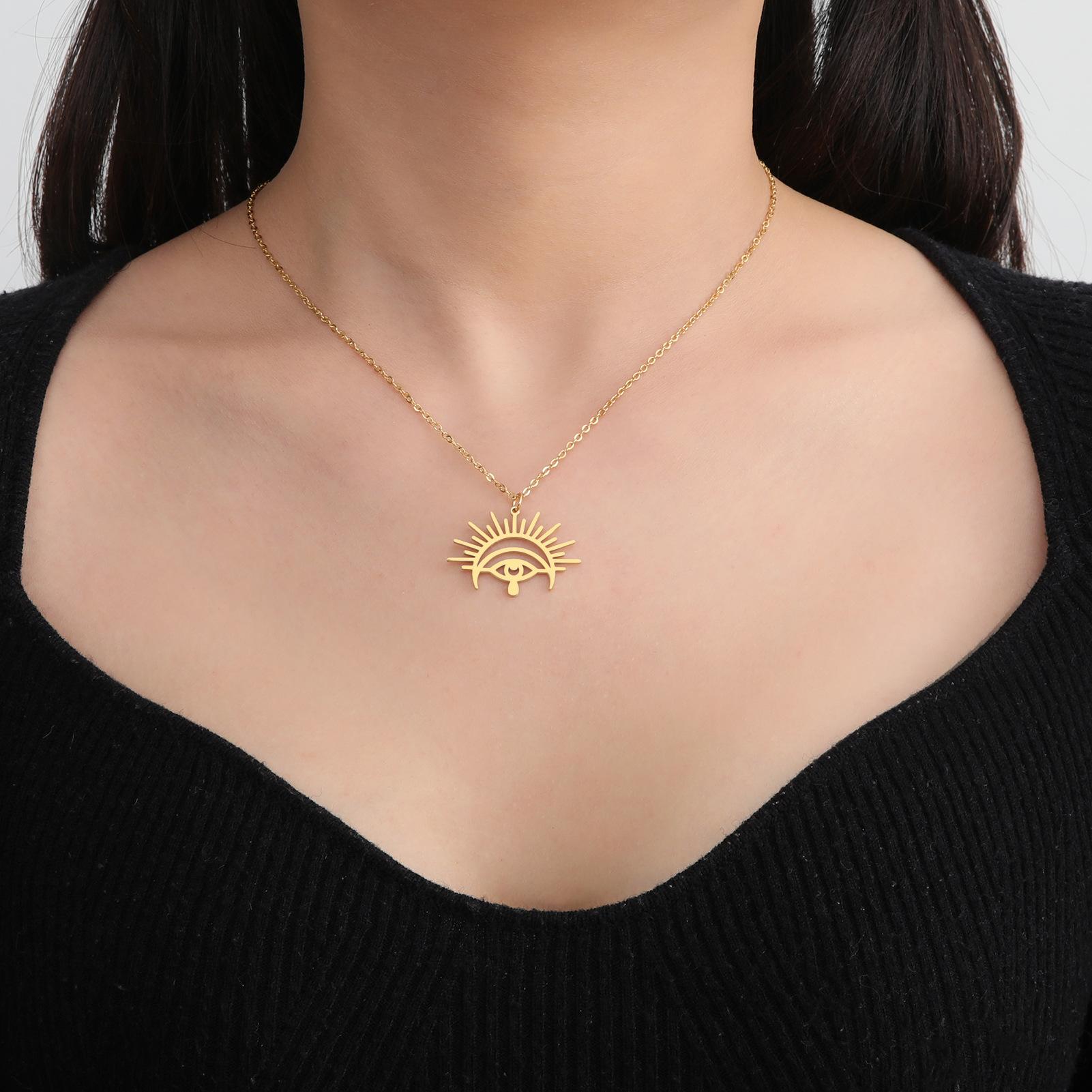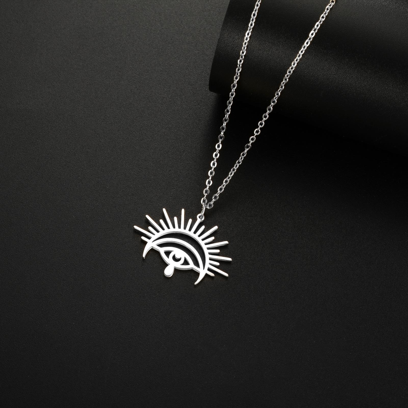 Cross-border hot-selling corte de titânio aço oco colar radiação pingente de olho elegante all-match colar de aço inoxidável feminino