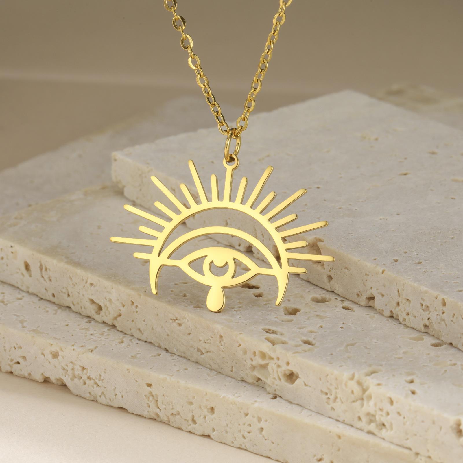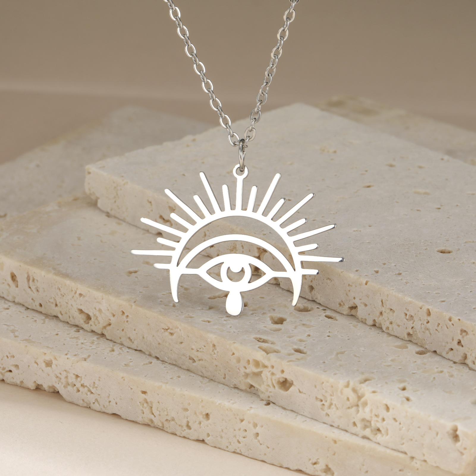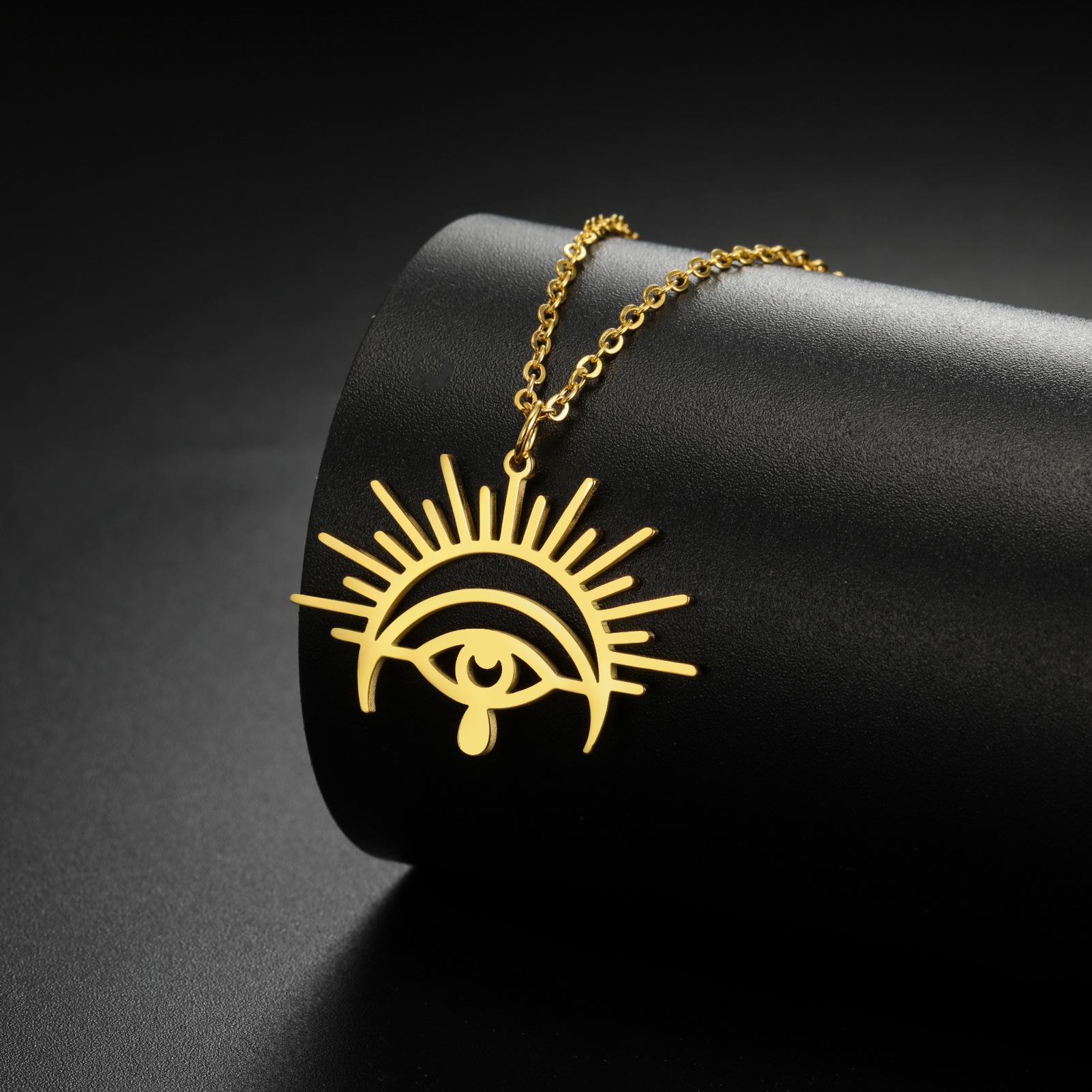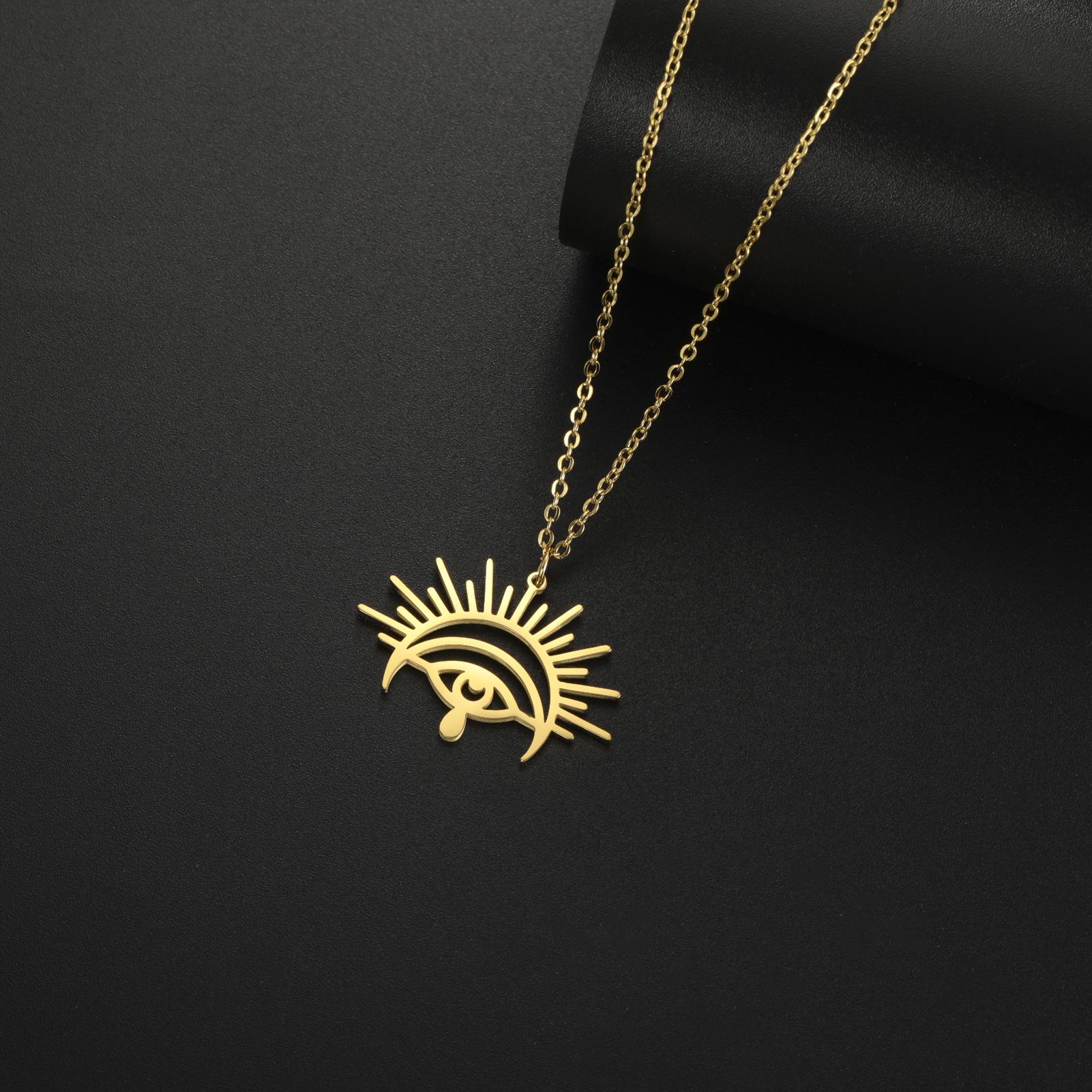 Cross-border hot-selling corte de titânio aço oco colar radiação pingente de olho elegante all-match colar de aço inoxidável feminino