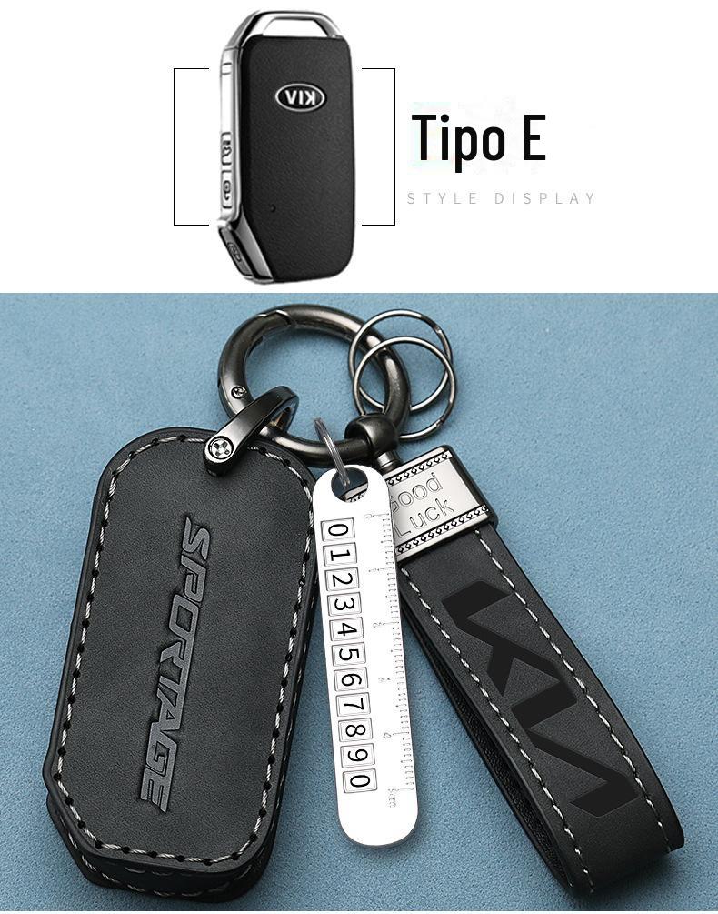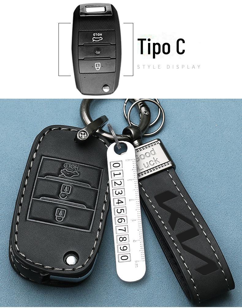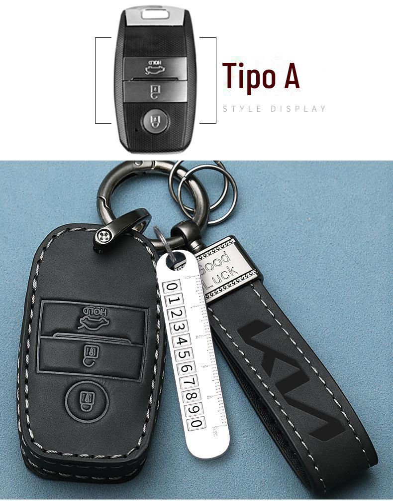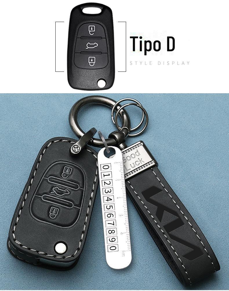 Kia A [carbon black] Key case + car logo lanyard + metal ruler number plate