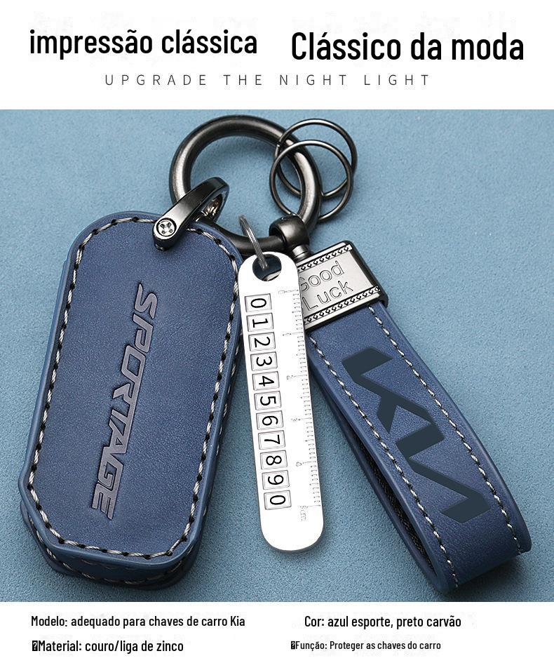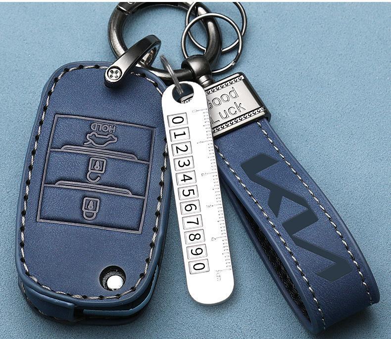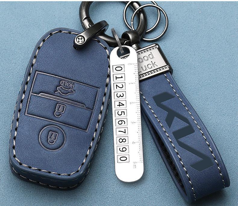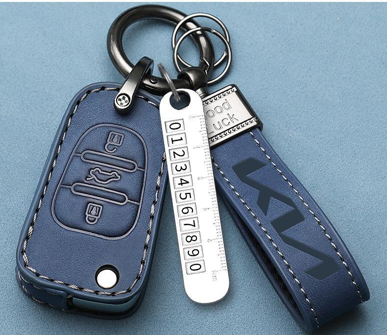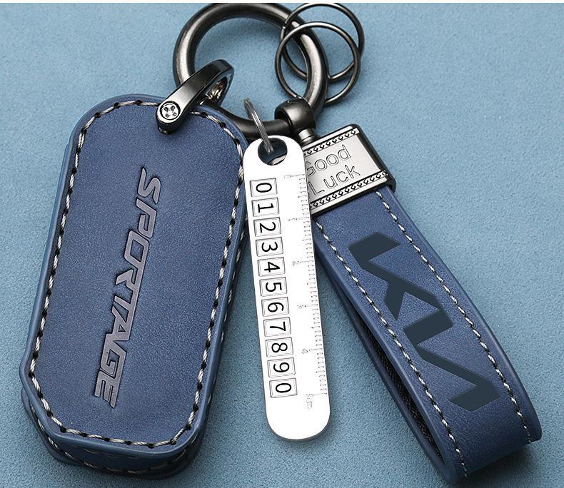 Kia A [sports blue] Key case + car logo lanyard + metal ruler number plate, Kia A [carbon black] Key case + ca...