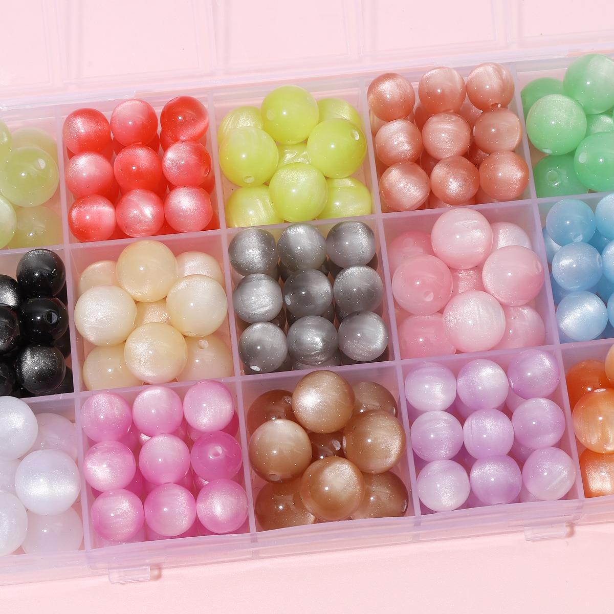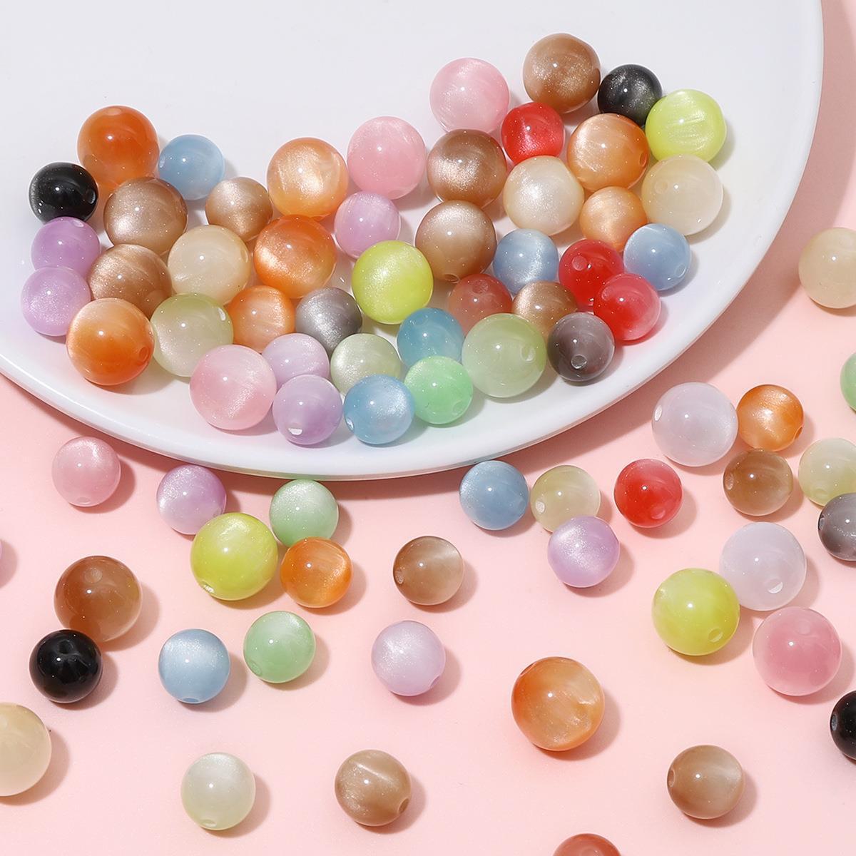 Contas redondas de imitação de olho de gato de resina de alta qualidade AliExpress, contas coloridas com furos retos espalhados, acessórios para joias com contas artesanais faça você mesmo