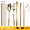 Conjunto de Talheres Portátil de Aço Inoxidável Conjunto de 7 Peças Hashis Faca Garfo Colher Canudo Doméstico Exterior Estudante Conjunto Caixa de Jantar