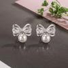 Brincos de pérolas com zircônia e laço, brincos pequenos e bonitos, requintados e sofisticados, populares, diários, versáteis, temperamento