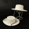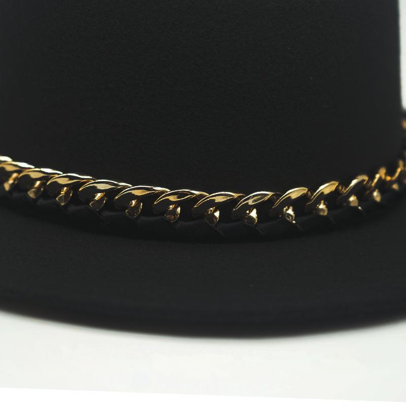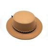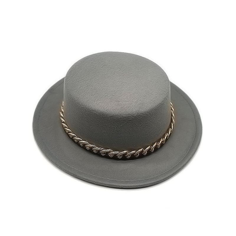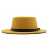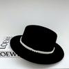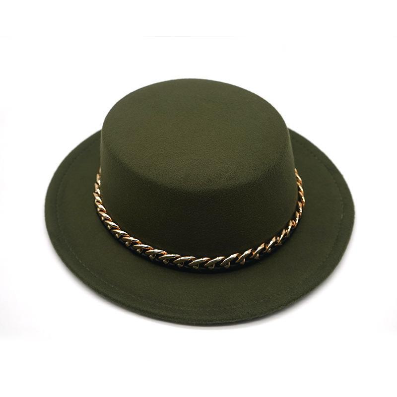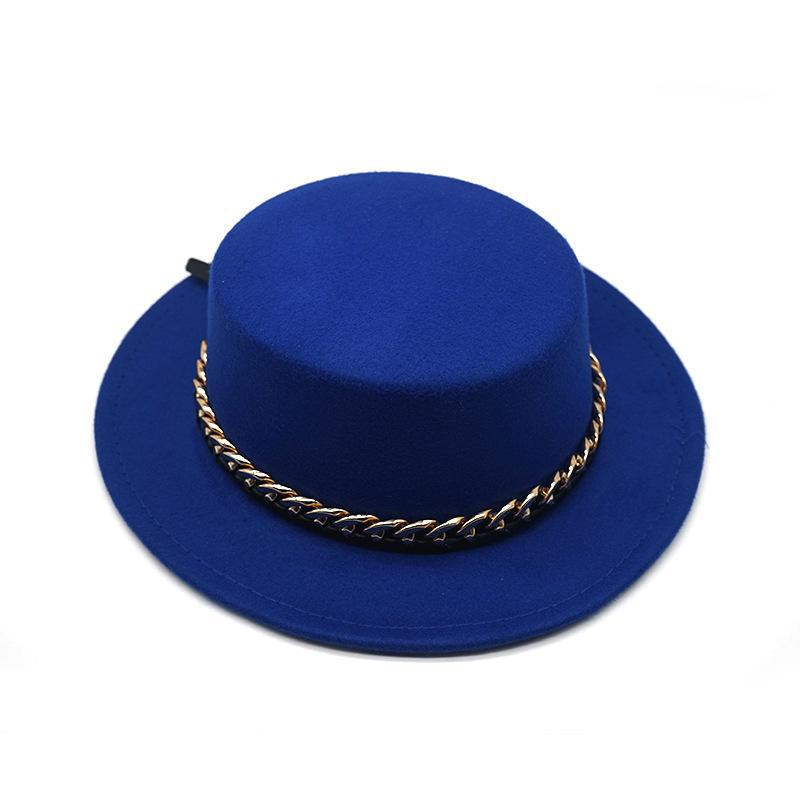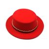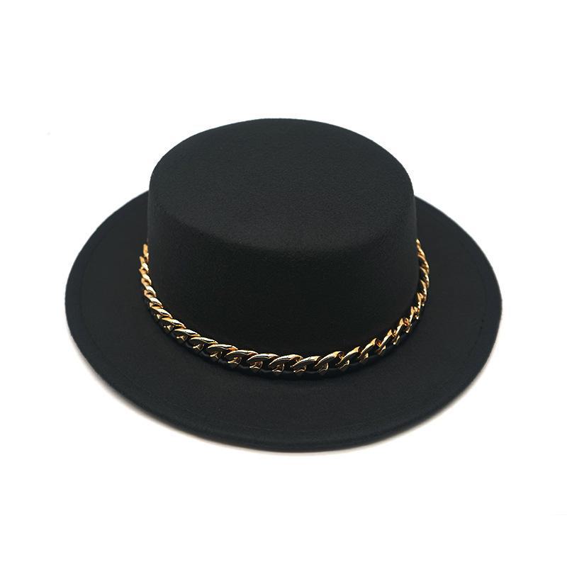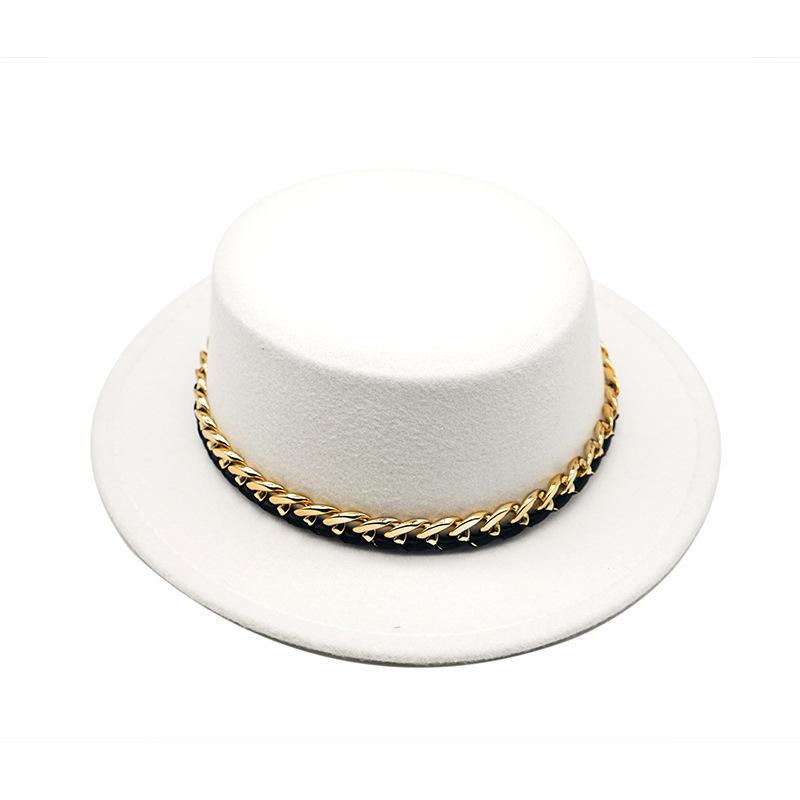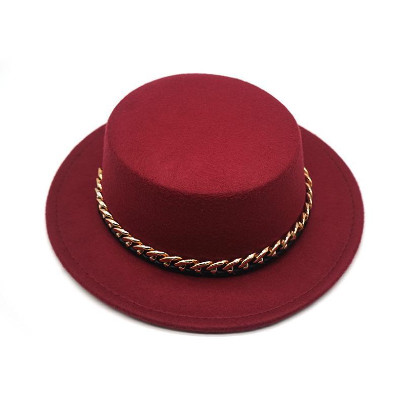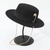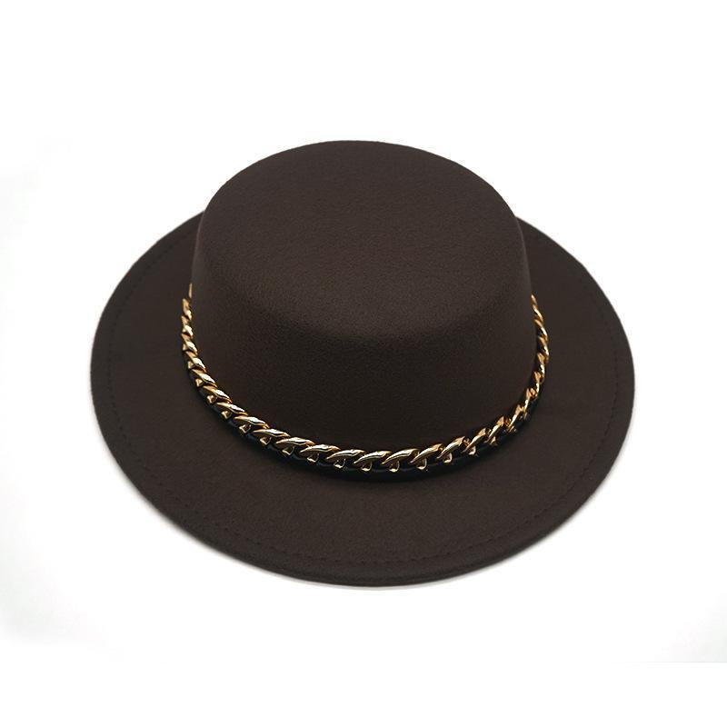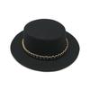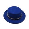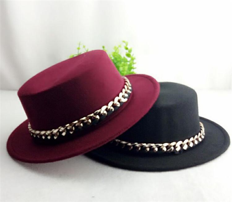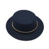 Novo estilo europeu e americano britânico corrente de ouro com chapéu de cavalheiro de topo plano chapéu de feltro de lã de aba plana grande feminino chapéu de hip-hop de cor sólida