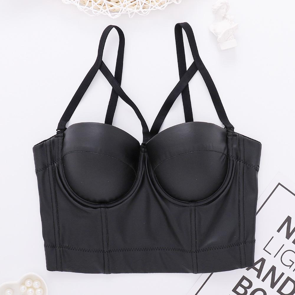 Camisola de Couro PU Quente Mais Vendida Transfronteiriça Sutiã Modelador Feminino Aliexpress Popular Roupa de Performance de Prom Top Tubinho Elástico para Mulheres