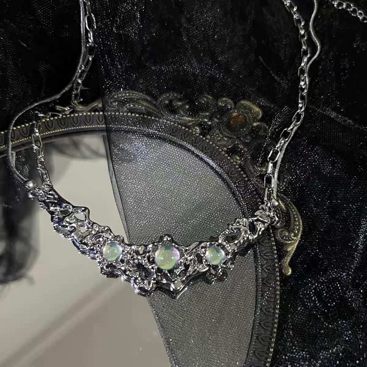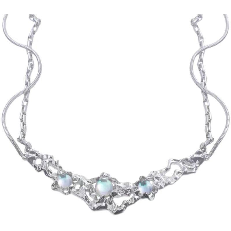 Colar Design Pedra da Lua Cristal Luxo Acessível Nicho Multicamadas Pingente Clavícula Senso de Design Corrente Feminino Moderno e Exquisito