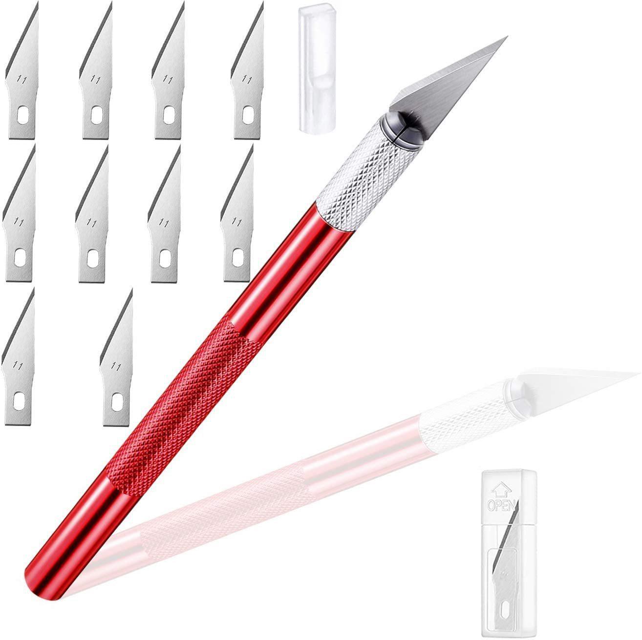 Carving knife red + carving knife 11#10 pieces + long blade box*1, Silver/light blue carving knife set of 36 p...