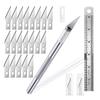 Blue carving knife*1+11#Blade*20+15cm steel ruler*1+needle bottle*1