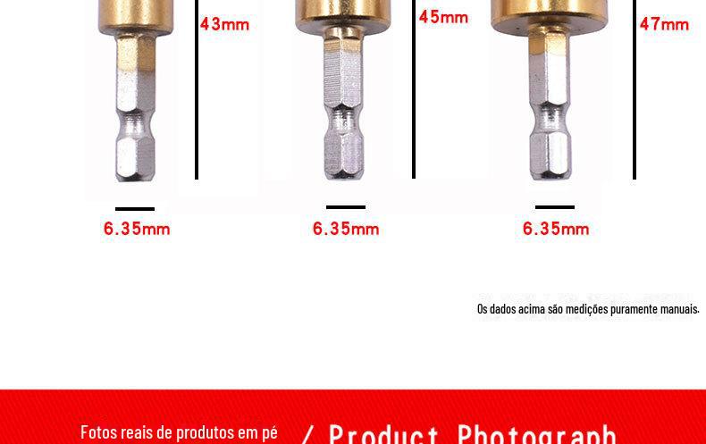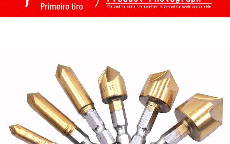 [Nome do produto]: chanfro de cinco arestas banhado a titânio com alça hexagonal de 6 unidades
