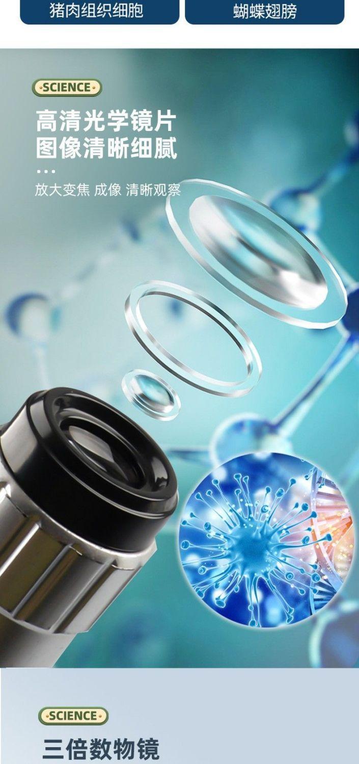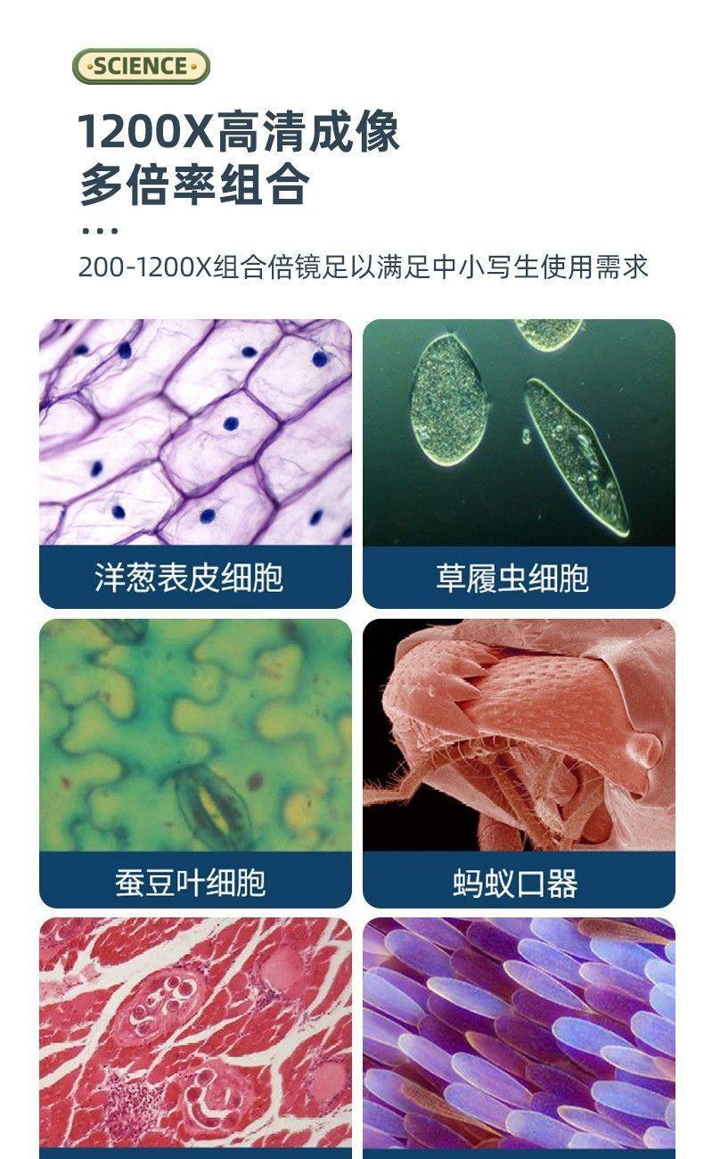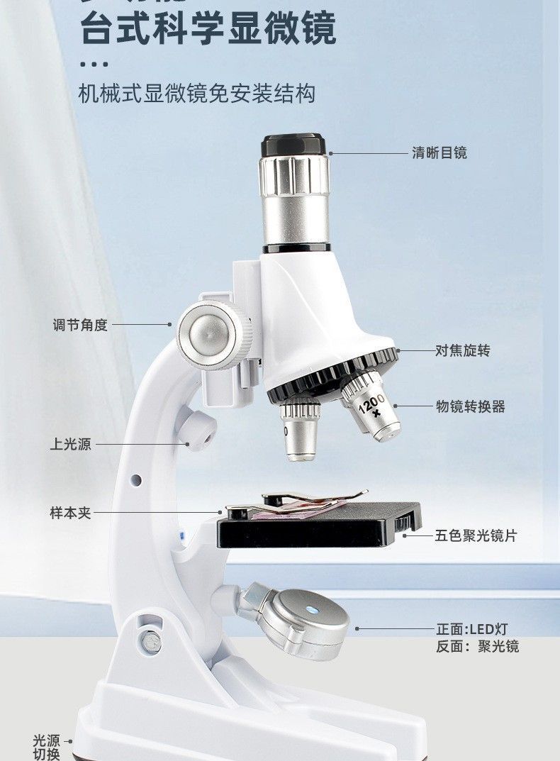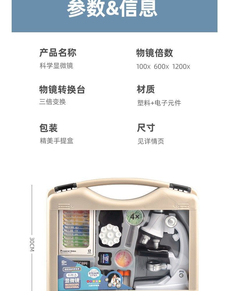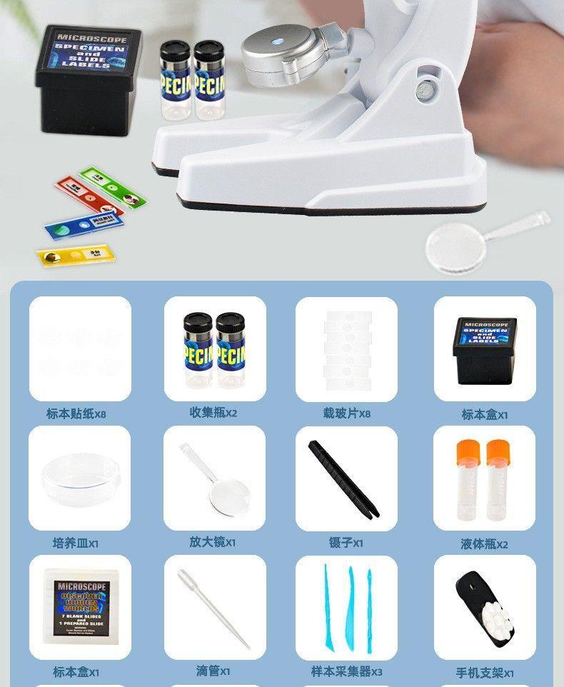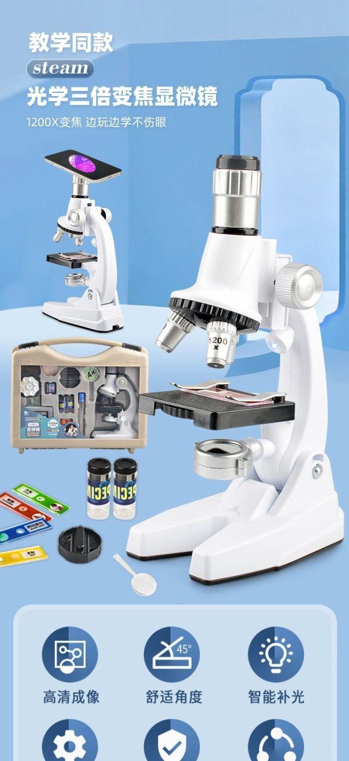 Microscópio de Alta Definição Transfronteiriço para Experimentos de Ciências Biológicas de Alunos do Ensino Fundamental, Lupa de 1200X, Brinquedos de Ciência e Educação para Crianças, Educacional