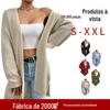 Jaqueta suéter europeia e americana da Amazon para mulheres, outono e inverno, manga comprida, gola, corta-vento, temperamento, cardigã de malha longo e fino |
