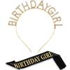 Europeia e Americana Hot Selling Etiqueta de festa de aniversário com strass aniversariante menina Hairband Shoulder Strap Set