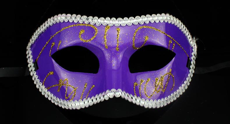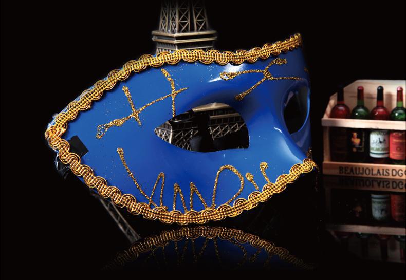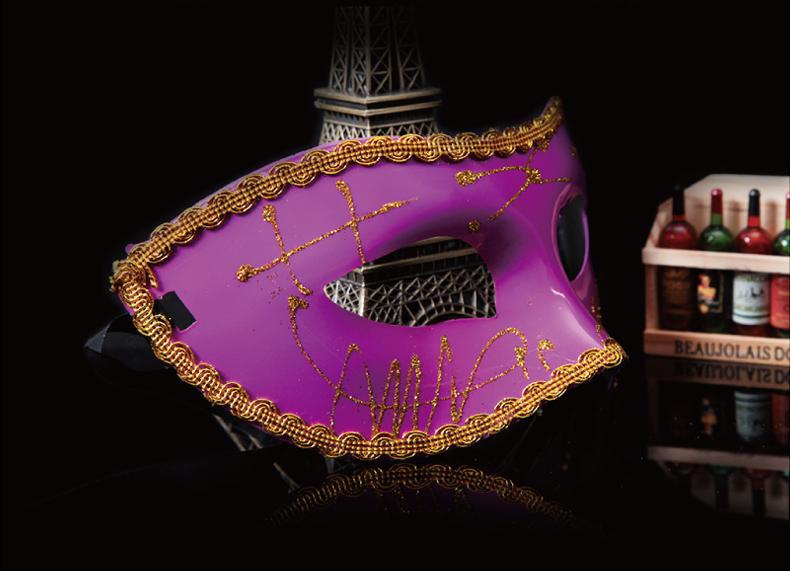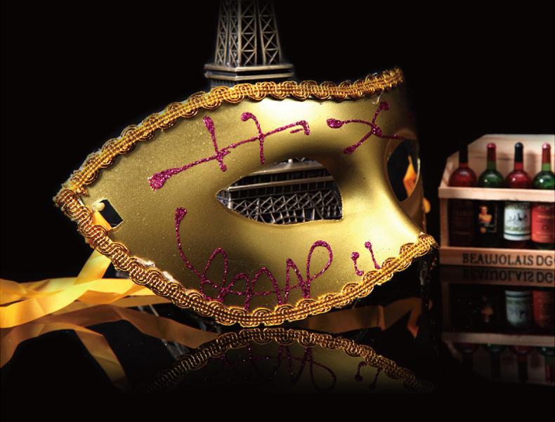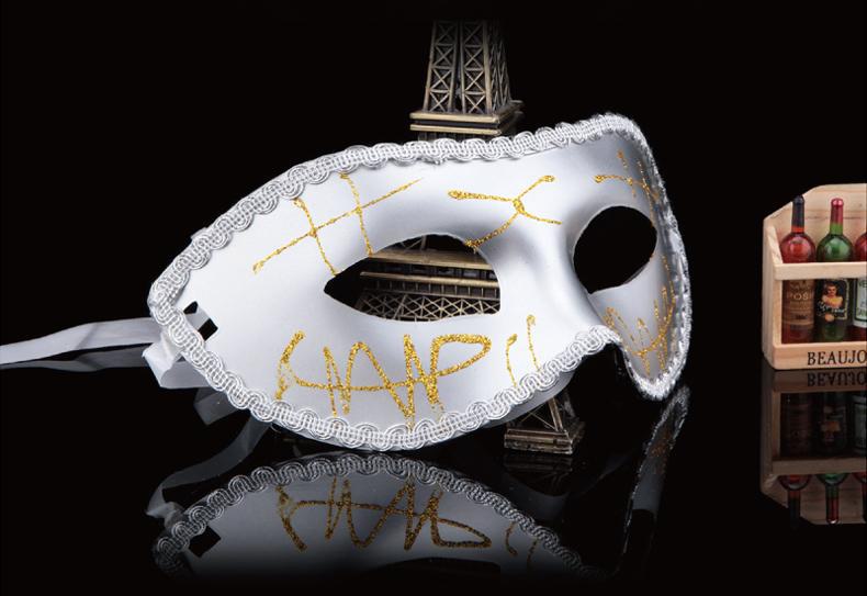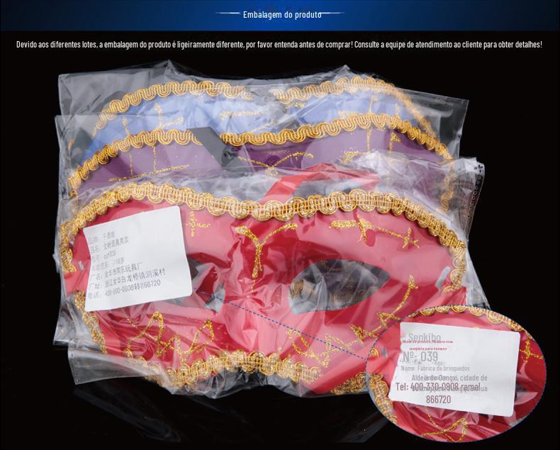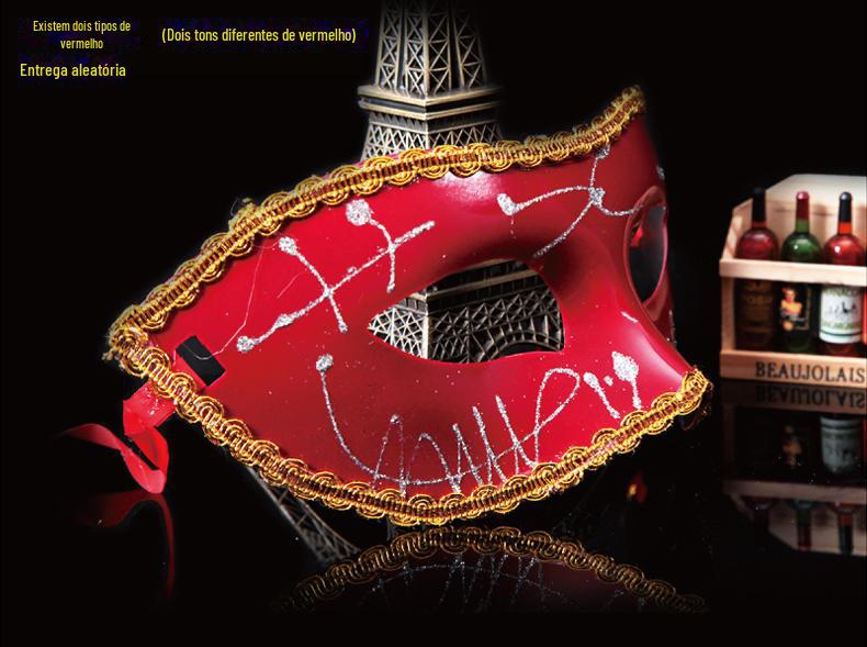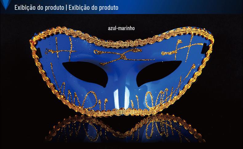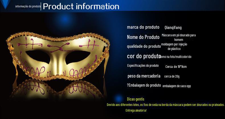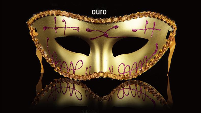 Máscara de baile de máscaras de Natal Máscara veneziana pintada de meia face Máscara de renda de cabeça plana Máscara de pó dourado para homens e mulheres