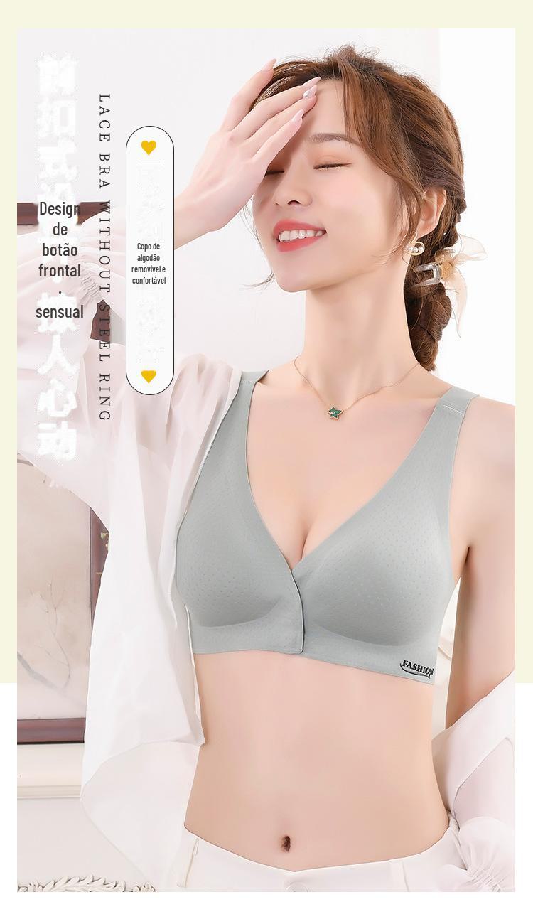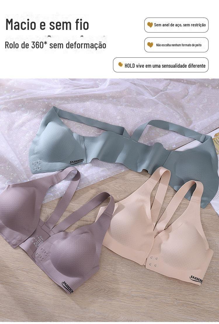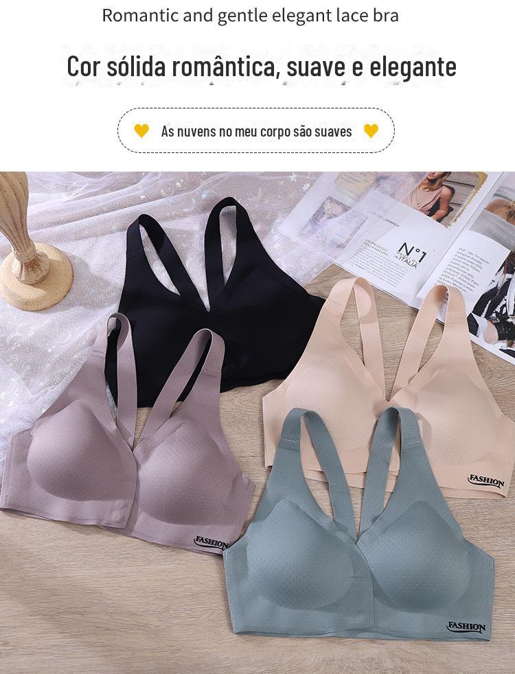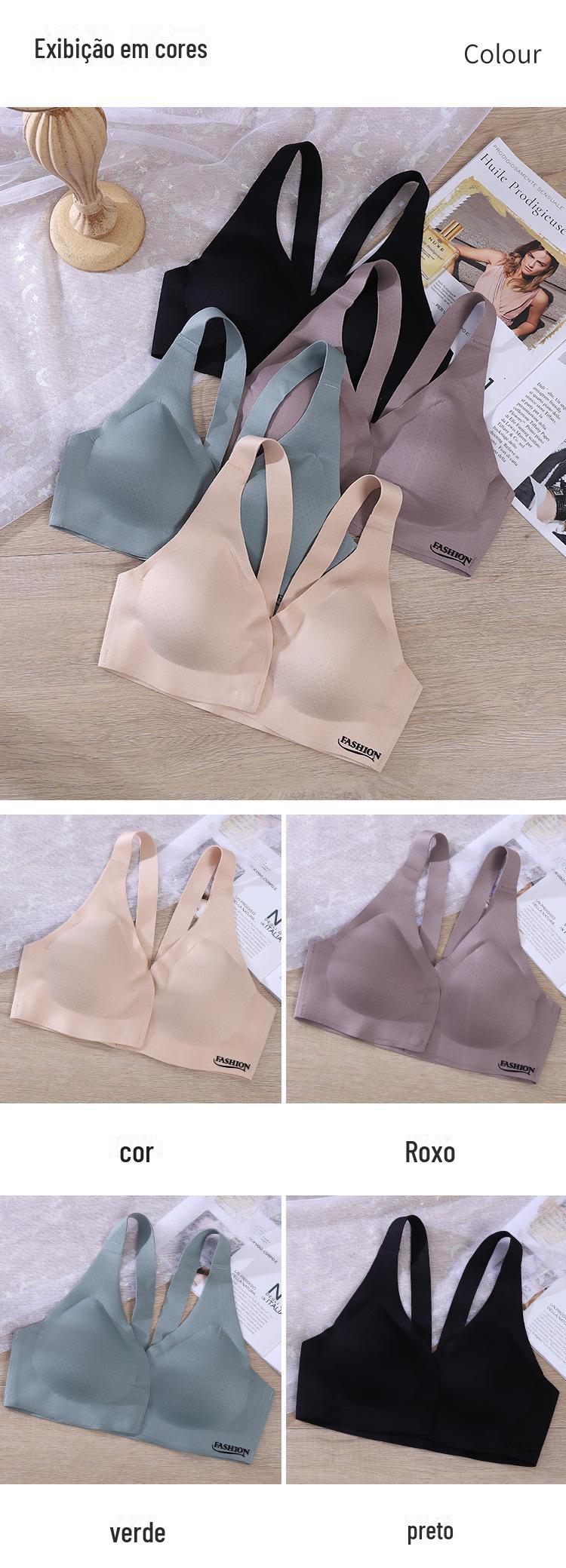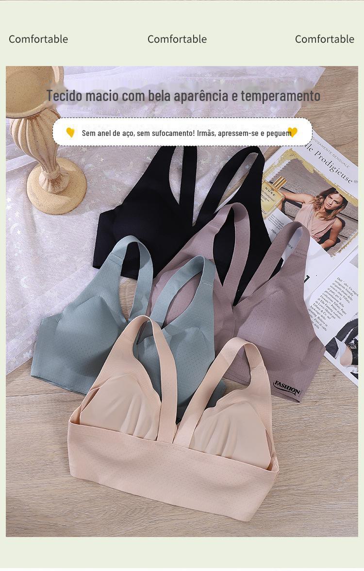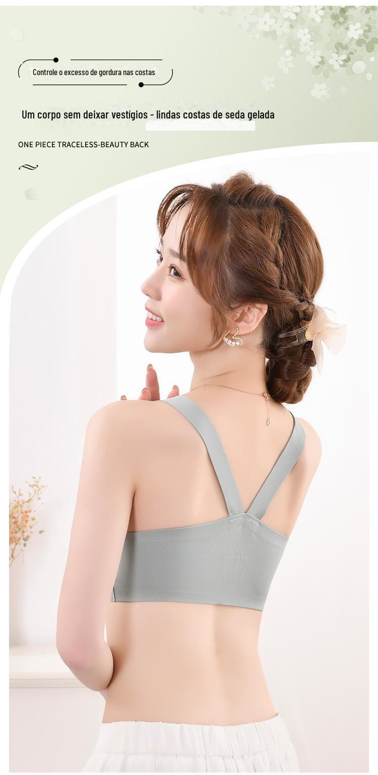 Uma peça de seda de gelo sem costura sem anel de aço fivela dianteira ajustável push-up tamanho grande bonito para trás esportes cuecas sutiã feminino