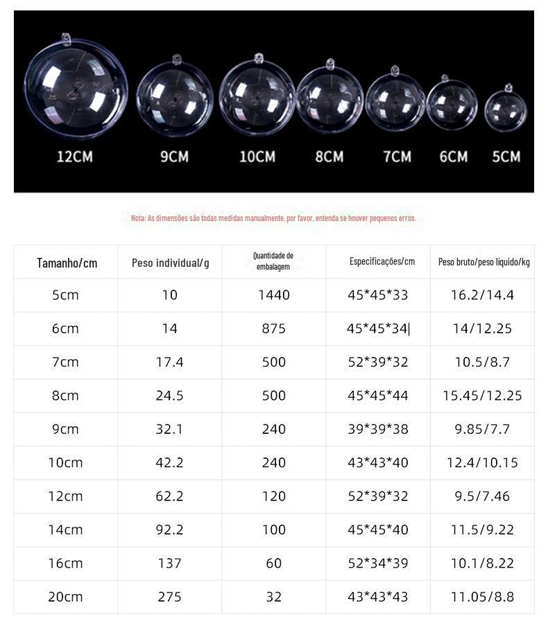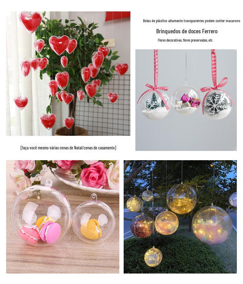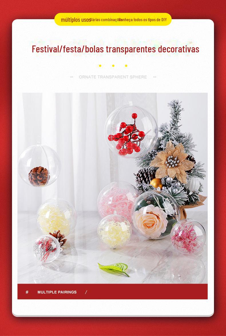 Bola Acrílica Oca Transparente 3-20cm Bola de Plástico Redonda Bola Abre e Fecha Decoração de Natal Ps Bola de Natal Enfeite Pendurável