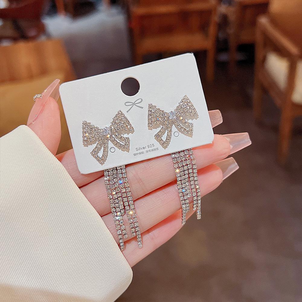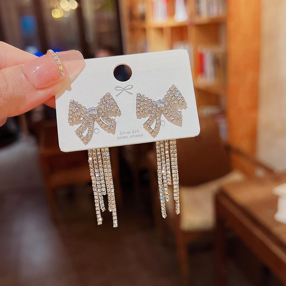Compre Brincos elegantes de borla de laço design de nicho feminino brincos de alta qualidade novos brincos de luxo leve da moda um brinco de duas peças no atacado no Joom.pro